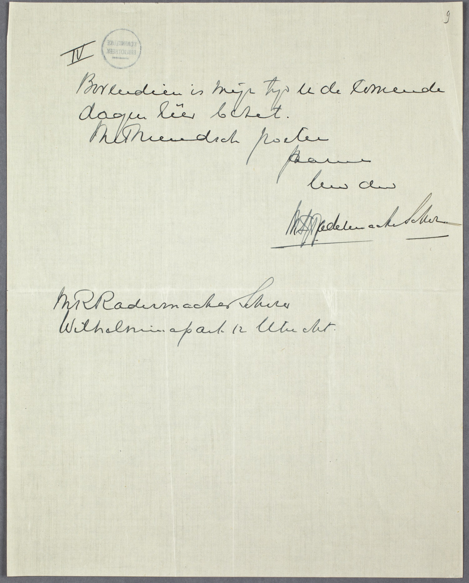 Ik blijf bereid tot alle medewerking. (zoo noodig: mijn gironummer 18328 Utrecht) Voor overleg kunt U mij tel. bereiken no 15860 – Kantoor – liefst tusschen 11 en 12 Uur smorgens. Aangezien het ons voor alles wenschelijk toeschijnt, dat de actie van uit een Centraal punt wordt georganiseerd, laten wij gaarne de leiding aan U over. Bovendien is mijn tijd in de komende dagen zéér bezet.