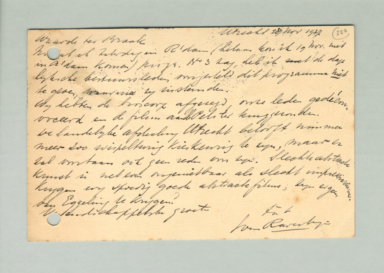 Nadat ik Zaterdag in R'dam (helaas kon ik 19 Nov. niet in A'dam komen) progr. Nr 3 zag, heb ik de dagelijksche bestuursleden voorgesteld dit programma niet te geven, waarmee zij instemden.