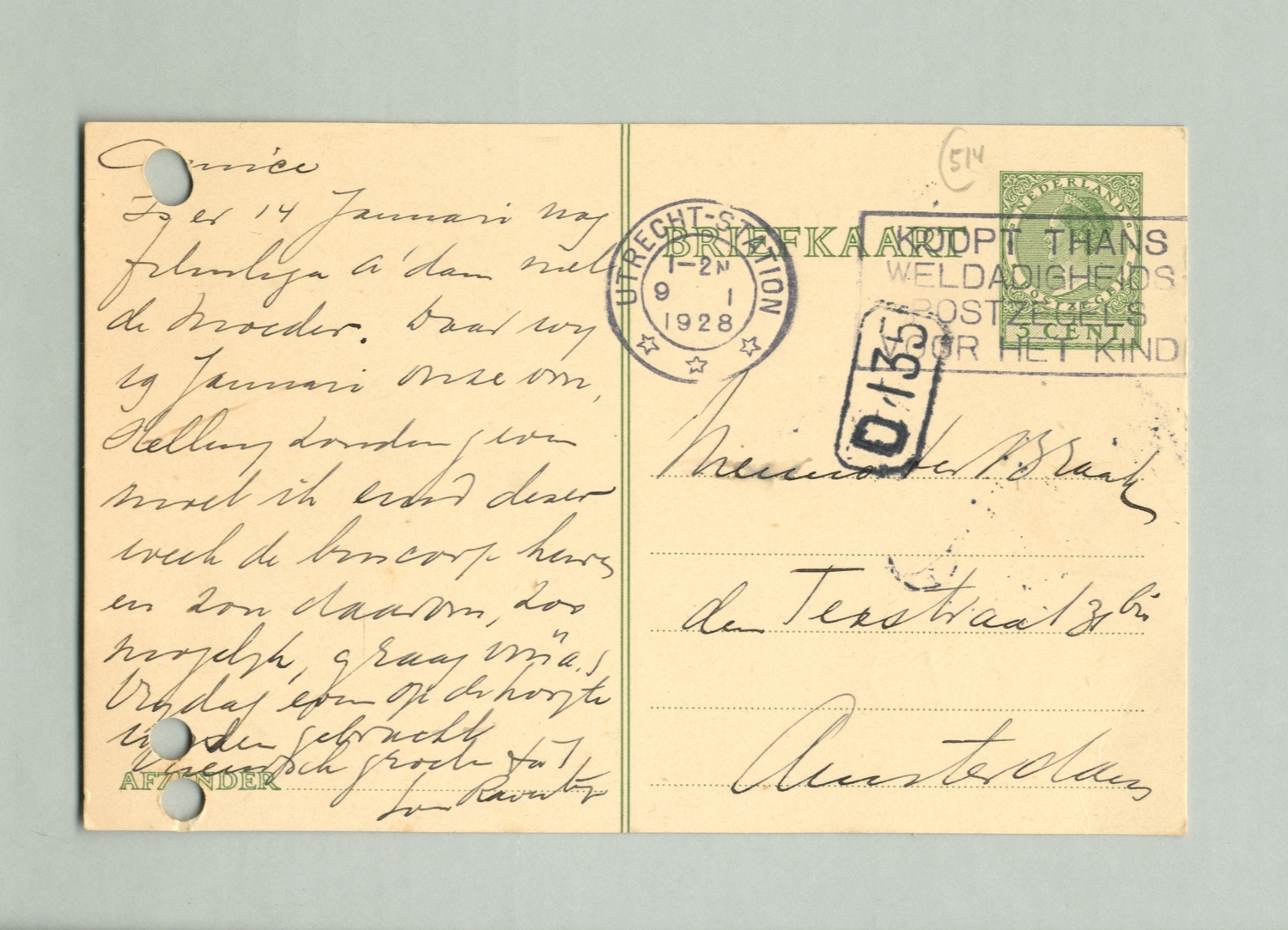 Is er 14 Januari nog filmliga A'dam met de Moeder. Daar wij 19 Januari onze voorstelling zouden geven moet ik [eind] dezen week de bioscoop huren en zou daarom, zoo mogelijk, graag vóór a.s. Vrijdag even op de hoogte worden gebracht.