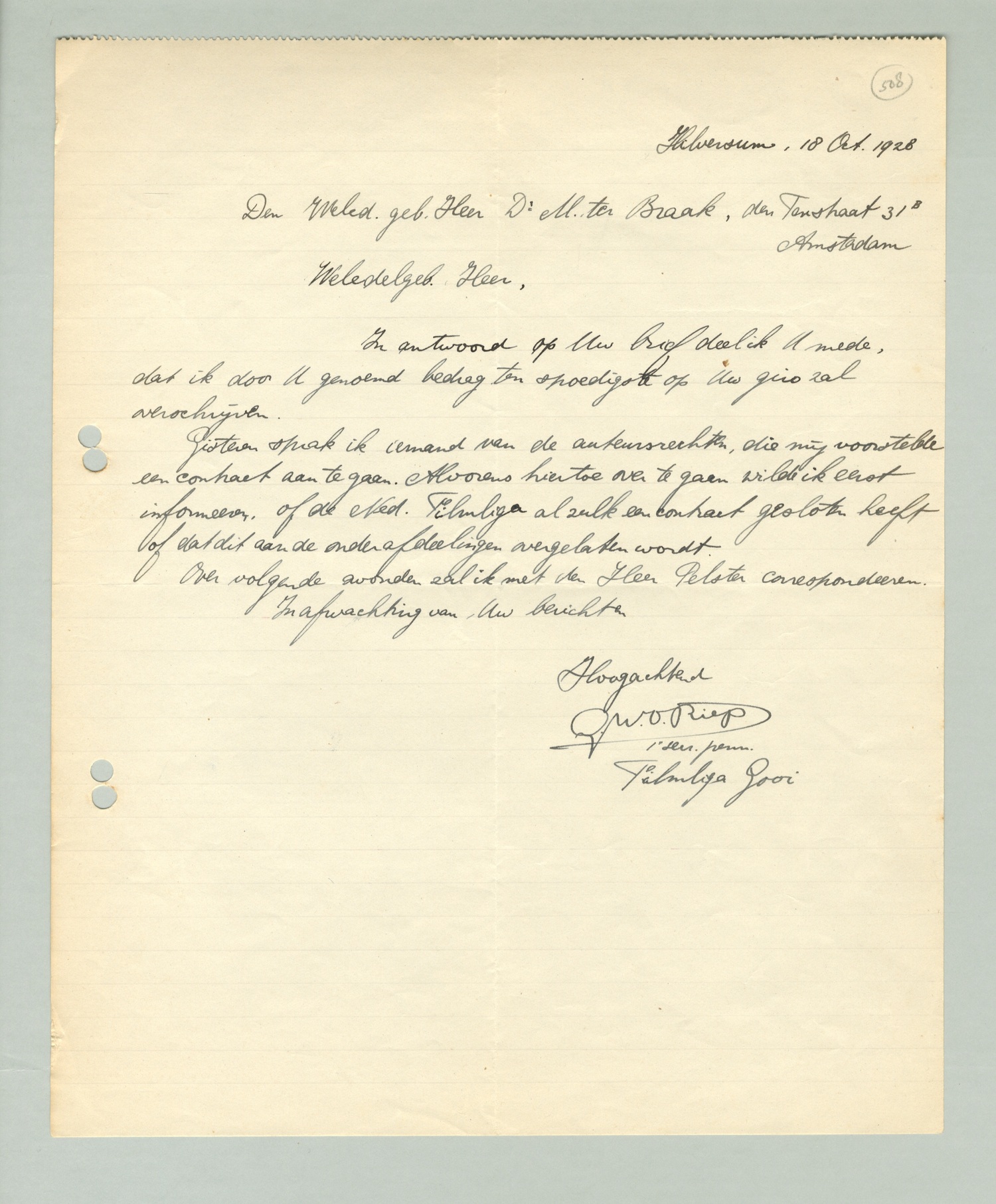 Over volgende avonden zal ik met den Heer Pelster correspondeeren.