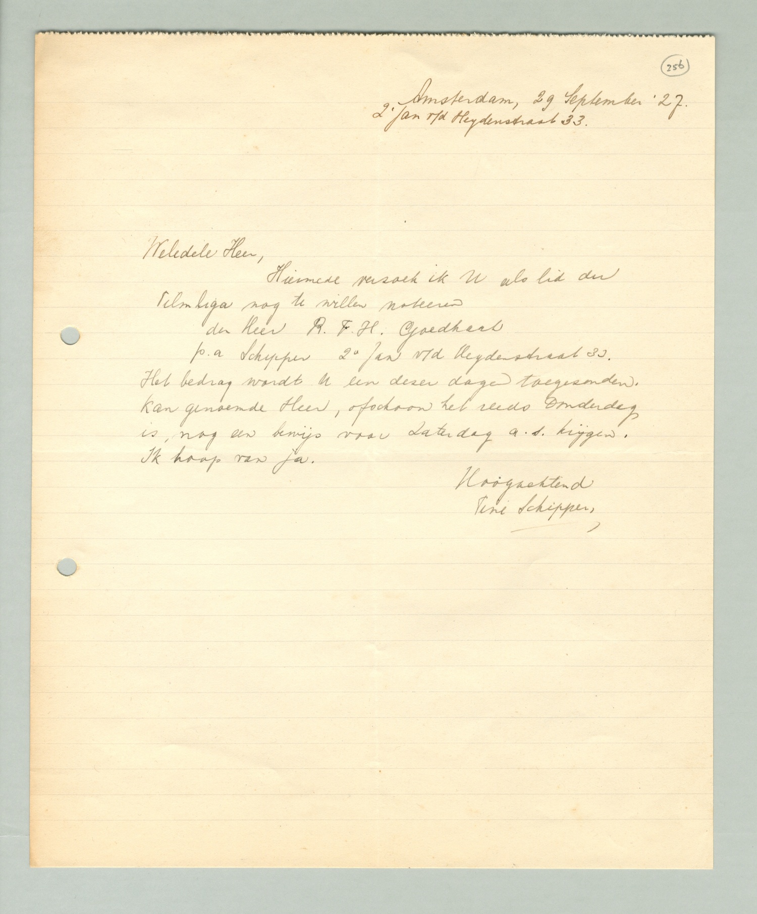 | p.a. Schipper 2e Jan v/d Heydenstraat 33. |