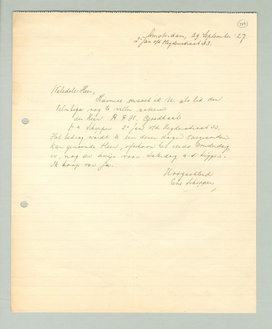 | Het bedrag wordt U een dezer dagen toegezonden. Kan genoemde Heer, ofschoon het reeds Donderdag is, nog een bewijs voor Zaterdag a.s. krijgen. Ik hoop van ja. |