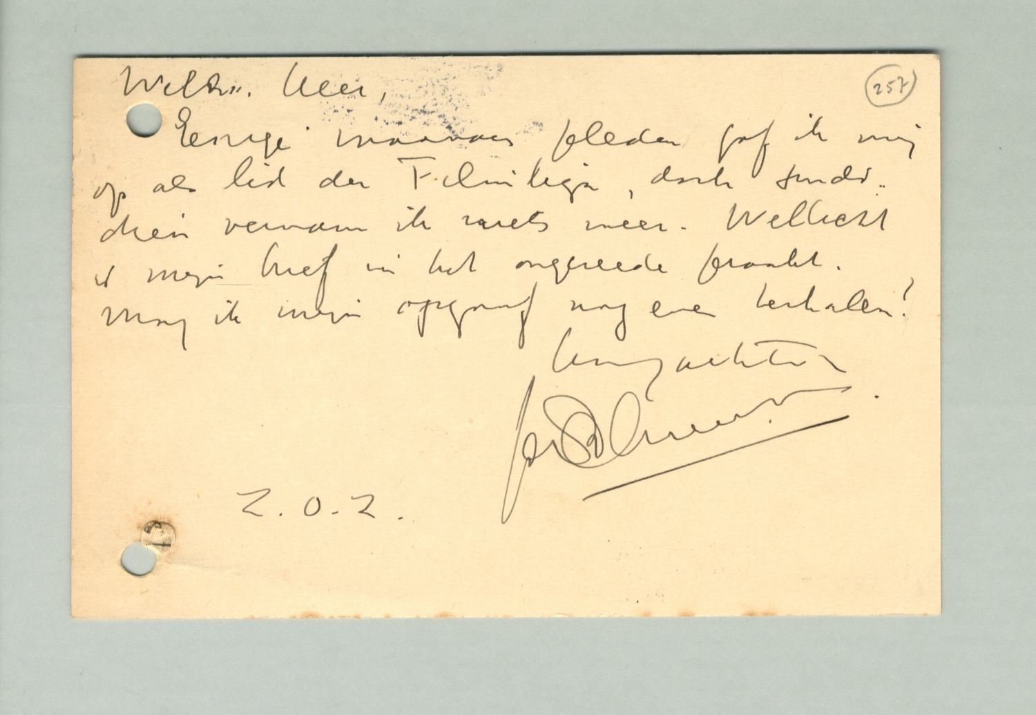 Eenige maanden geleden gaf ik mij op als lid der Filmliga, doch sindsdien vernam ik niets meer. Wellicht is mijn brief in het ongereede geraakt. Mag ik mijn opgaaf nog even herhalen?