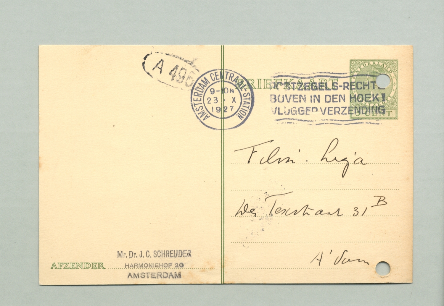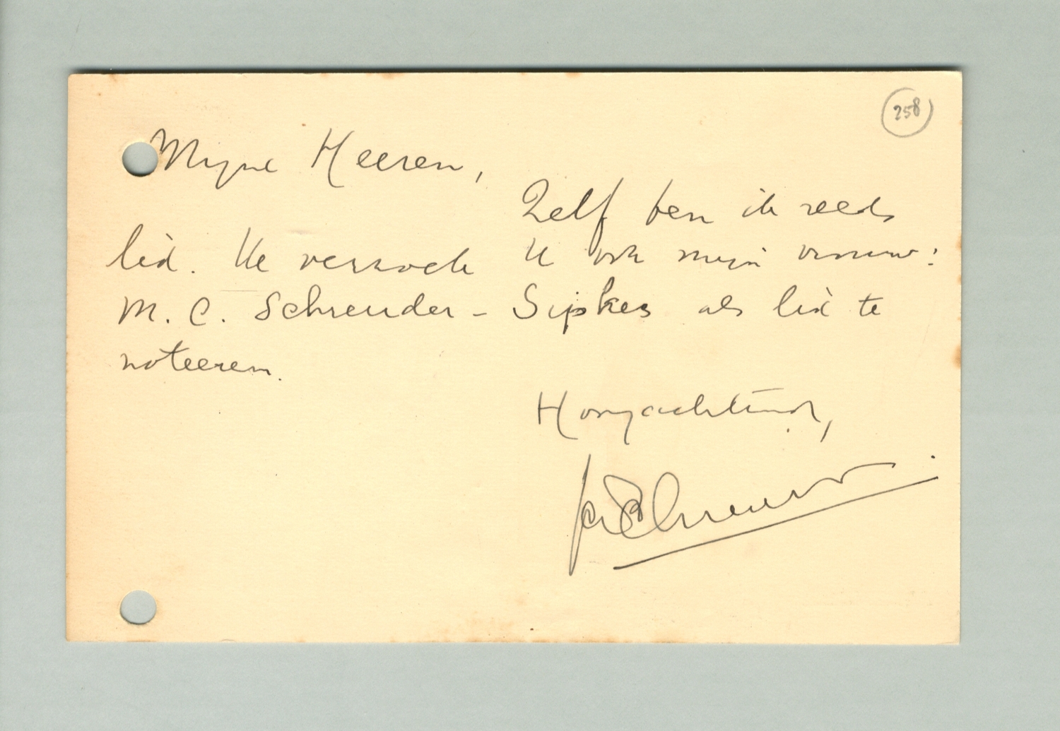 Zelf ben ik reeds lid. Ik verzoek U ook mijn vrouw: M.C. Schreuder-Sipkes als lid te noteeren.