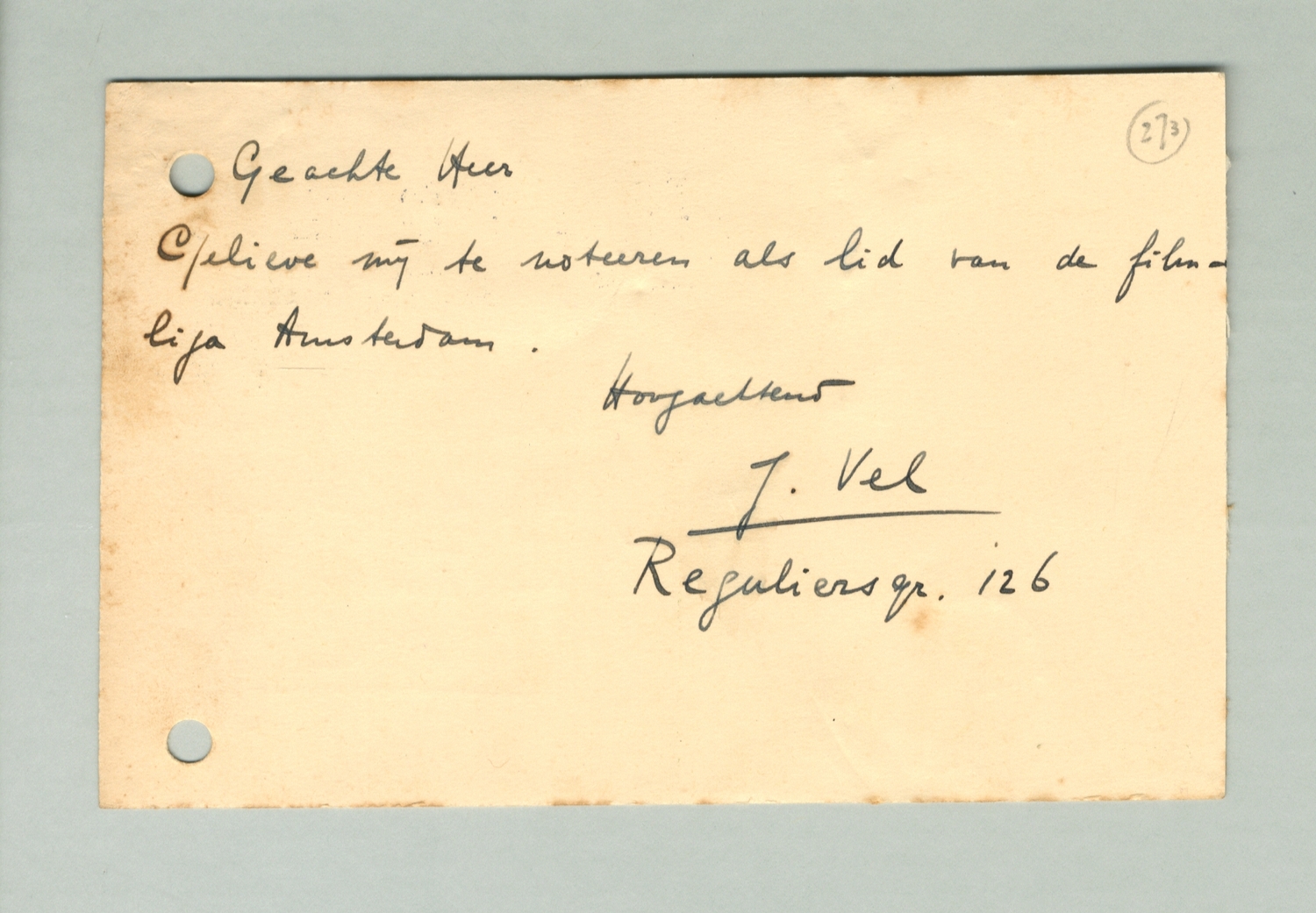 Gelieve mij te noteeren als lid van de filmliga Amsterdam.