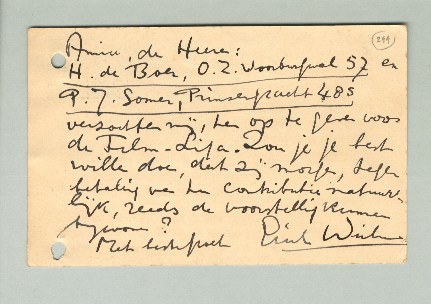 verzochten mij, hen op te geven voor de Film-Liga. Zou je je best willen doen, dat zij morgen, tegen betaling van hun contributie natuurlijk, reeds de voorstelling kunnen bijwonen?