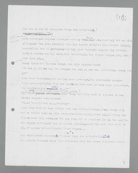 Jean Wood, de Indischman met het zonderlinge namencomplex, bleef loom in zijn bank wachten tot Dumay terug zou komen. Hij peinsde over een tooneelstukje, waarin hij een klein rolletje zou moeten vervullen: een oom uit Indië. Ze hadden hem gevraagd, of hij het wilde doen en hij had ja gezegd, omdat ze thuis gezegd hadden: ‘Zoo kom je er tenminste in!’ Hij had nooit tooneel gespeeld en begreep, dat hij om zijn rare uitspraak uitgenoodigd was. De uitnoodiging was drie dagen oud; alle denken eraan had hij totnogtoe geweerd, zoo beklemde de zaak hem; maar nu dacht hij machinaal aan niets anders, om maar niet te denken aan dat geval van daareven. Een oom dus, met een snor, en een wit vest, en daaronder een buik van een kussen; hij moest het nichtje een zoen geven; zoent haar vaderlijk, stond er in het boekje.