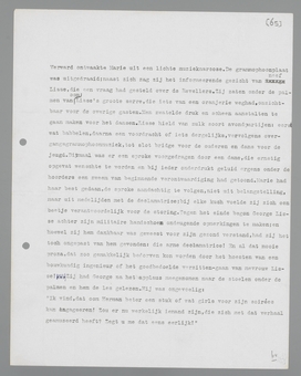 Zij dansten achter de palmen. Bij de eerste passen had George zijn partnerin al getaxeerd: in orde! daar mankeert niets aan! Dat lezen, bah, dat is nonsens, aanstellerij... goed voor oom Herman, om daar in te vliegen. Zijn trots zwol, omdat hij àchter de dingen keek, niet op den uiterlijken schijn afging. Heeregod, die vrouw kon dansen! Die was heel wat anders dan het intellectueele mirakel, waarvoor oom Herman haar versleet!