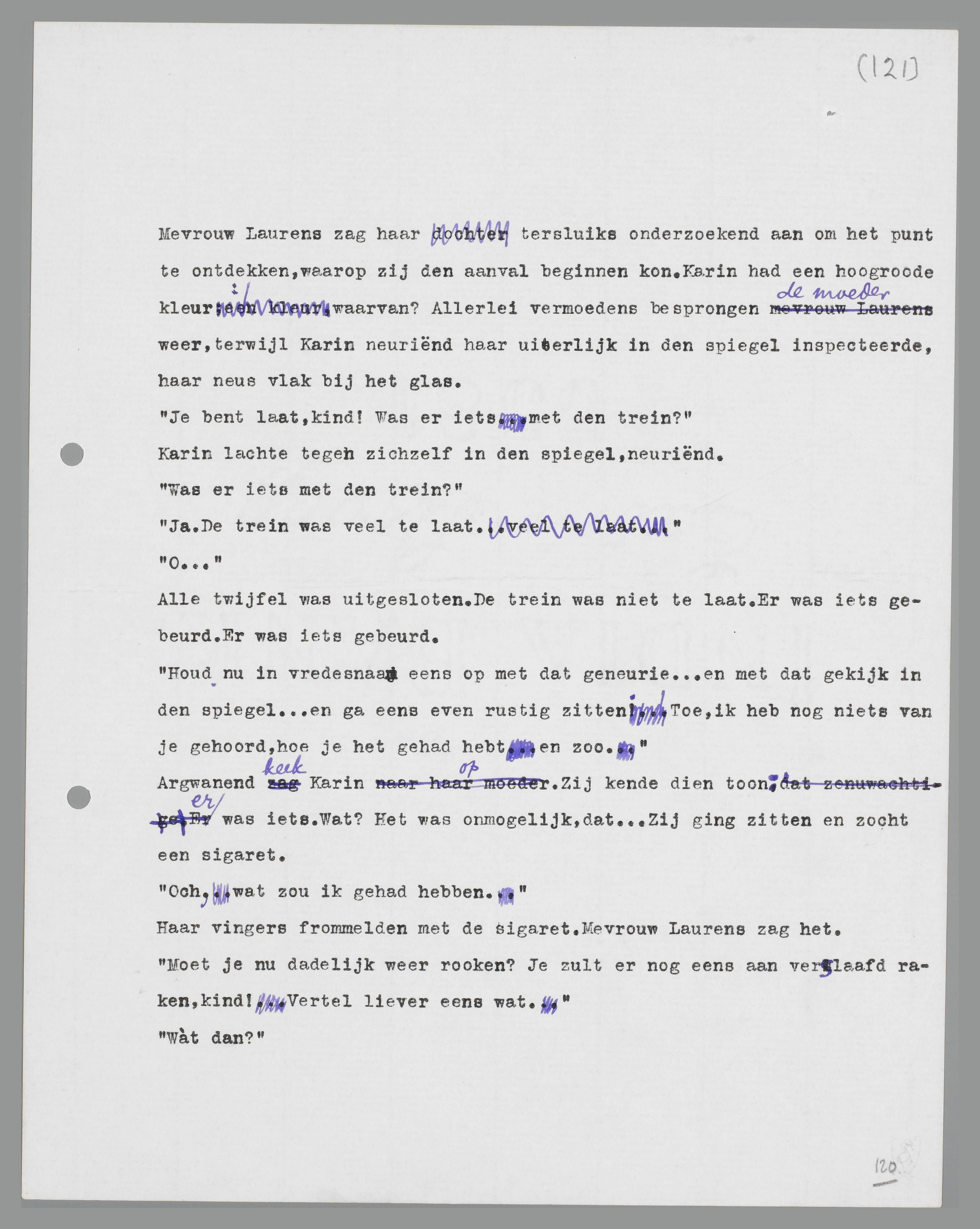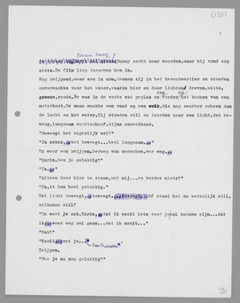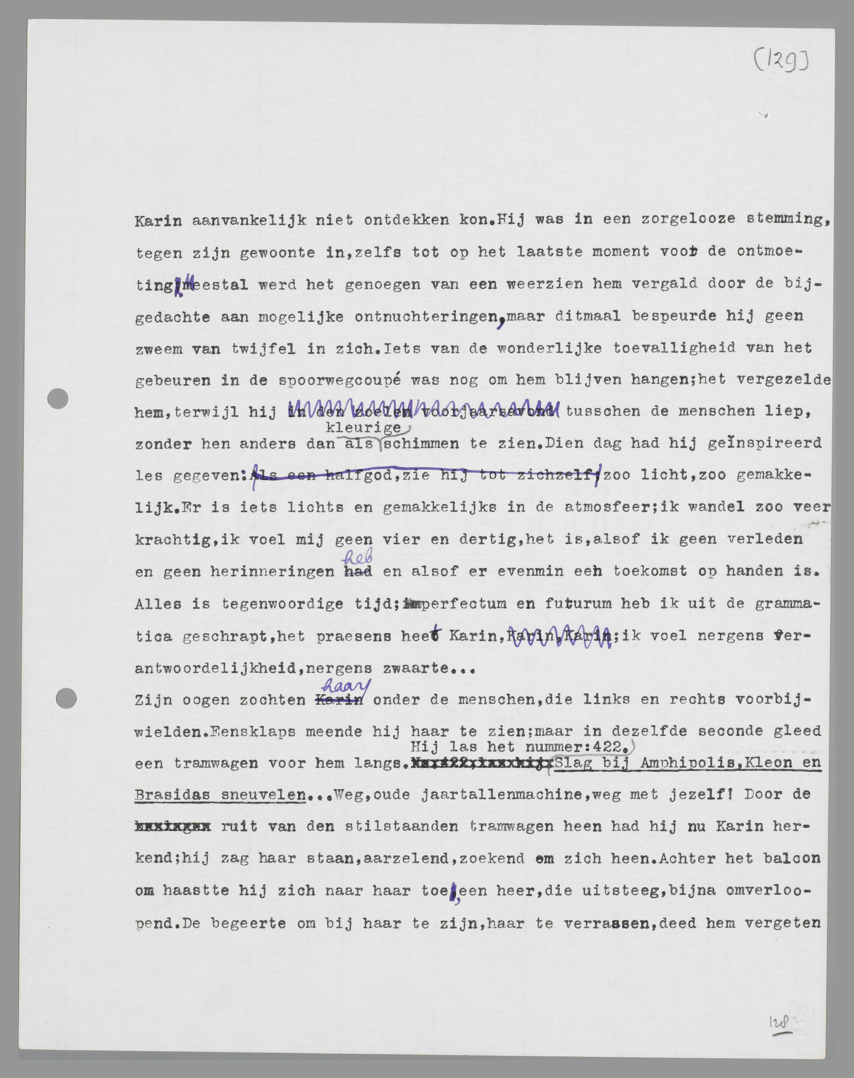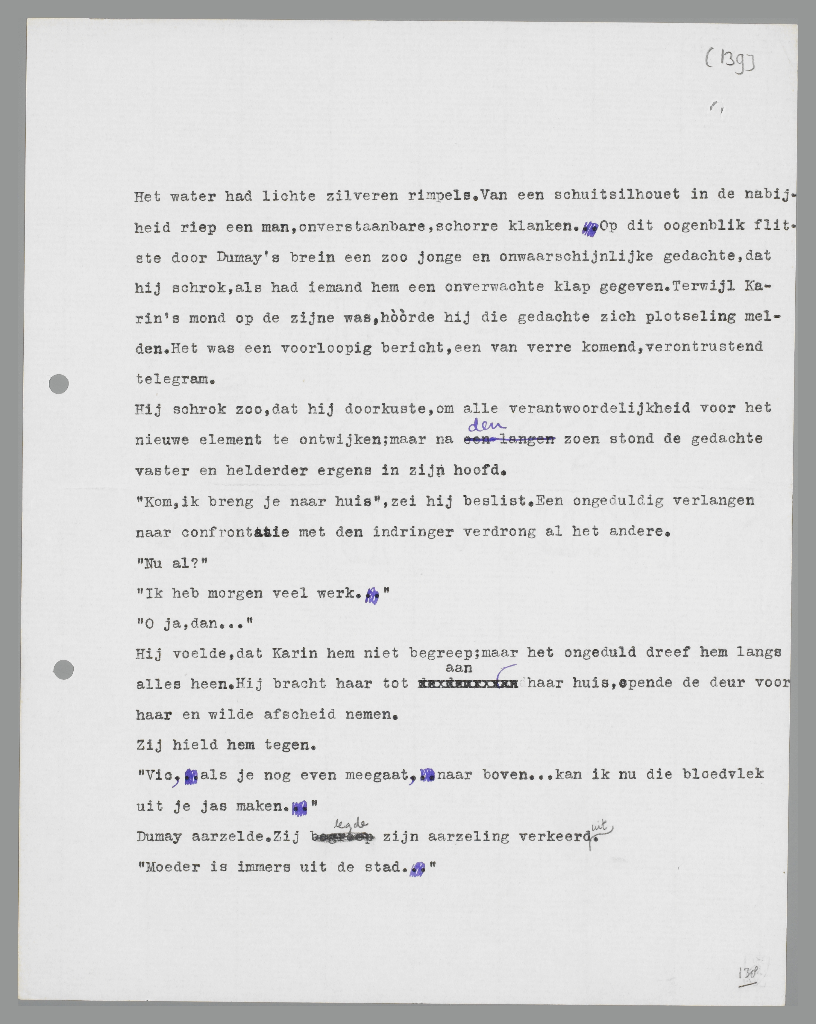 Karin, vanavond zie ik je weer. Ik weet niets meer van je gezicht. Ik kan me bijna niet meer voorstellen, hoe je er uitziet. Ja, blauwe oogen en blond haar. En je bent veel kleiner dan ik. Een donkerblauwe regenmantel. Dat is al zoo ongeveer drie vierde van je. En toch weet ik op geen stukken na meer, hoe je er uitzag!