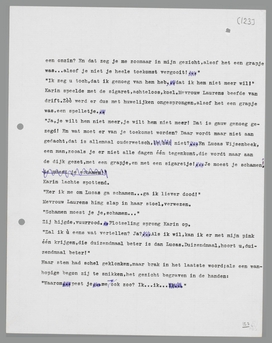 ‘Hij heeft gezegd dat ik er... zooéén was, van de straat, dat ik een hoer was, heeft hij gezegd. En hij weet, dat hij het liegt, dat ik het eerlijk met hem gemeend heb. Zoo, nou weet je het... en het kan me ook niet schelen, dat jij het weet. Vic, ik houd zooveel van je, van jou alleen. Ik zal ook nooit meer om iemand anders geven... ik zal alles