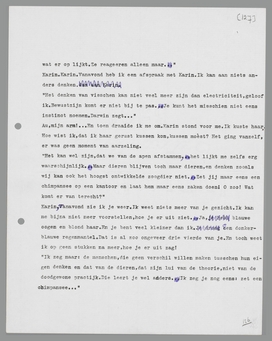 ‘Ik zeg maar: de menschen, die geen verschil willen maken tusschen hun eigen denken en dat van de dieren, dat zijn lui van de theorie, niet van de doodgewone practijk. Die leert je wel anders. Ik zeg je nog eens: zet een chimpansee...’