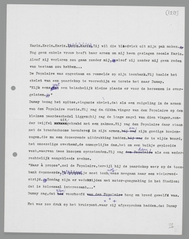 Dumay bezag het spitse, elegante skelet, dat als een zuigeling in de armen van den Populaire rustte. Hij zag den dikken vinger van den Populaire op den kleinen paardeschedel liggen; hij zag den langen nagel van dien vinger, zonder twijfel uitgekrabd met een zakmes. Hij zag den Populaire daar staan met de brandschoone beenderen in zijn armen, en zijn goedige koeienoogen, die nu een doceerende uitdrukking hadden, den te wijden boord, het smoezelige overhemd, de onmogelijke das, het om een buikje ge-