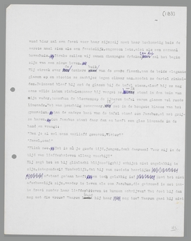 Vijf en veertig treden. Zij mag niet boven komen, zij hoort hier niet. Gesteld, zij is op de laatste trede; ik grijp haar bij de keel en duw haar terug, zoodat zij achterover slaat en...