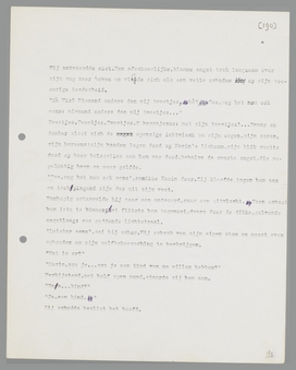 Tweetjes. Tweetjes. Tweetjes. O heerejezus: met zijn tweetjes!... Zwaar en donker sloot zich de sponzige inktvisch om zijn oogen, zijn ooren, zijn hersens; zijn handen lagen dood op Karin's lichaam, zijn blik rustte dood op haar hals; alles aan hem was dood, behalve de zwarte angst, die regelmatig heen en weer golfde.
