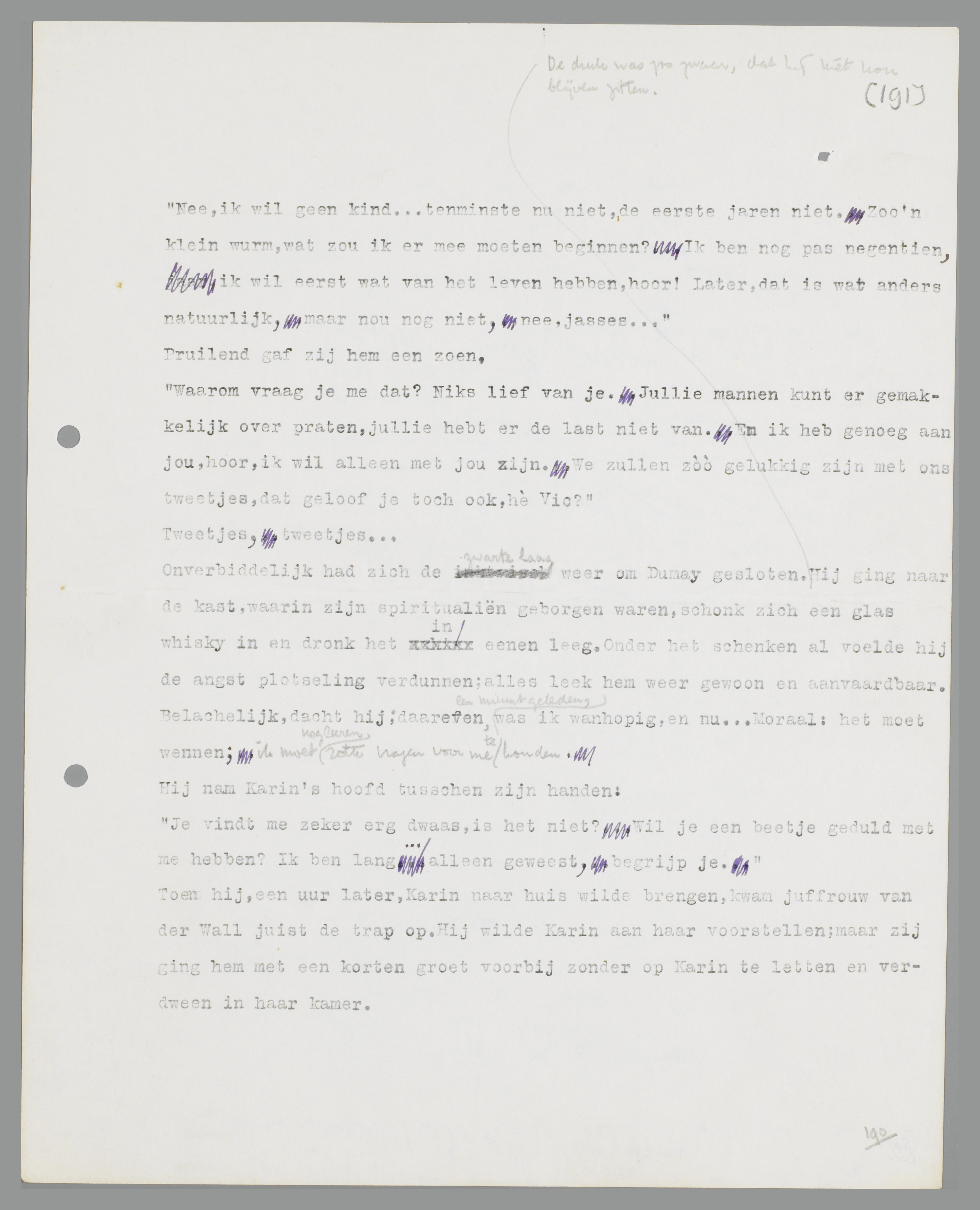 ‘Nee, ik wil geen kind... ten minste nu niet, de eerste jaren niet. Zoo'n klein wurm, wat zou ik er mee moeten beginnen? Ik ben nog pas negentien, ik wil eerst wat van het leven hebben, hoor! Later, dat is wat anders natuurlijk, maar nou nog niet, nee, jasses...’