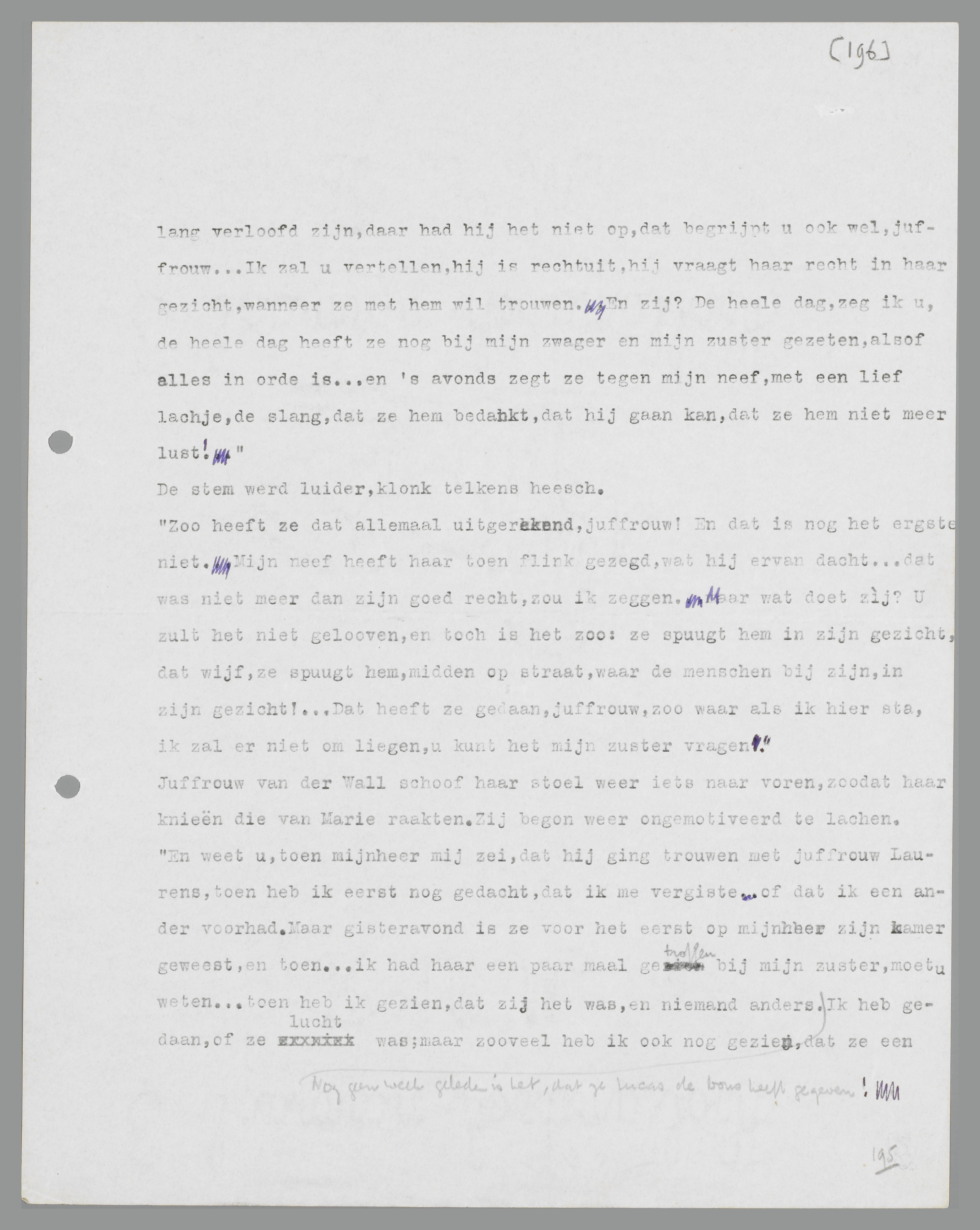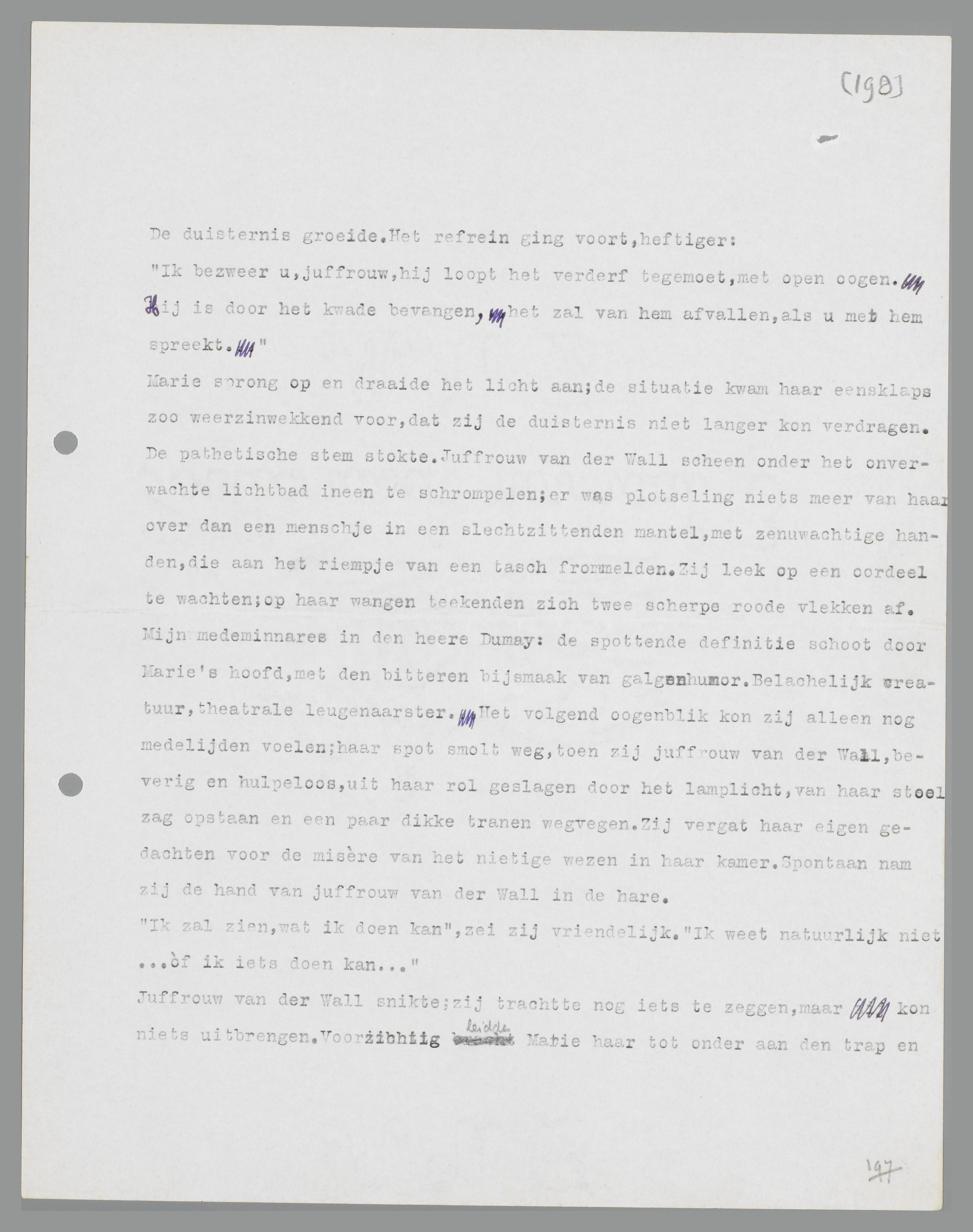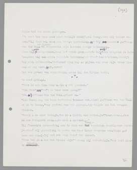 Juffrouw van der Wall bleef zwijgend aan haar taschje draaien. Haar oogen zwierven gejaagd van Marie naar haar handen en van haar handen naar Marie terug. Plotseling begon zij: