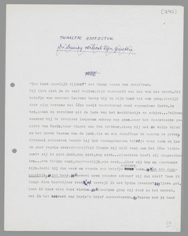 Dumay stond er wonderlijk nuchter bij. De mededeeling over de veronal-poeders had zijn gedachten een andere richting gegeven; geen revolver, geen bloedende schotwond, maar een paar witte poeders vormden nu onverwachts den achtergrond van Karin's wanhoopsdaad. Hij betrapte zich op een sensatie, die op teleurstelling leek.