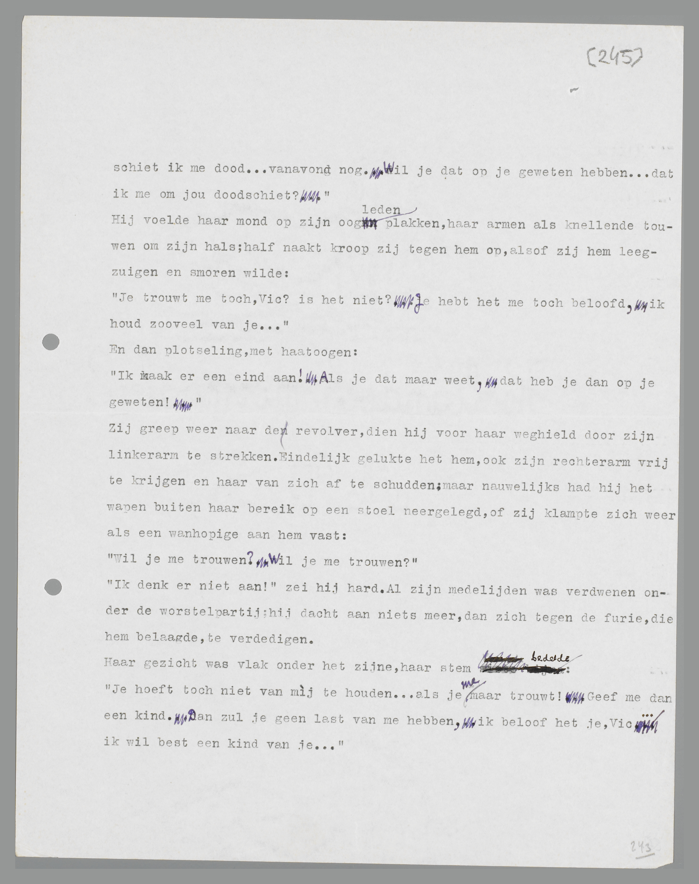‘Als je niet met me trouwt,’ hijgde zij, ‘als je niet met me trouwt, dan schiet ik me dood... vanavond nog. Wil je dat op je geweten hebben... dat ik me om jou doodschiet?’