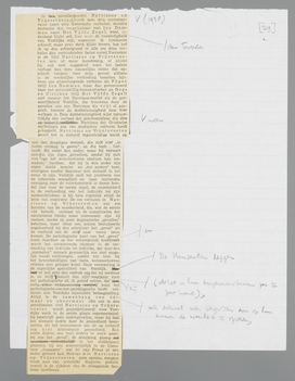 houding tusschen Lodewijk XIII en zijn gunsteling Cinq-Mars het hoofdthema is; de compositie is hier nog meer uit het subject gedacht, en in zooverre sluit dit historische verhaal zich aan bij het laatste niet-historische Een Twee Drie Vier Vijf, dat van 1933 dateert, en in ‘monologue intérieur’-stijl vijf minuten denkmomenten geeft van een man, die zijn vriendin en zichzelf wil doodschieten; dit laatste procédé behoort thuis bij den stijl van eenige fragmenten uit den roman Meneer Vissers Hellevaart, en men heeft, met hoeveel handigheid Vestdijk dit procédé dan ook moge hanteeren, toch den indruk, dat deze stijlformule een doorgangshuis is geweest, een zelfbevrijding vooral van den invloed van Joyce.