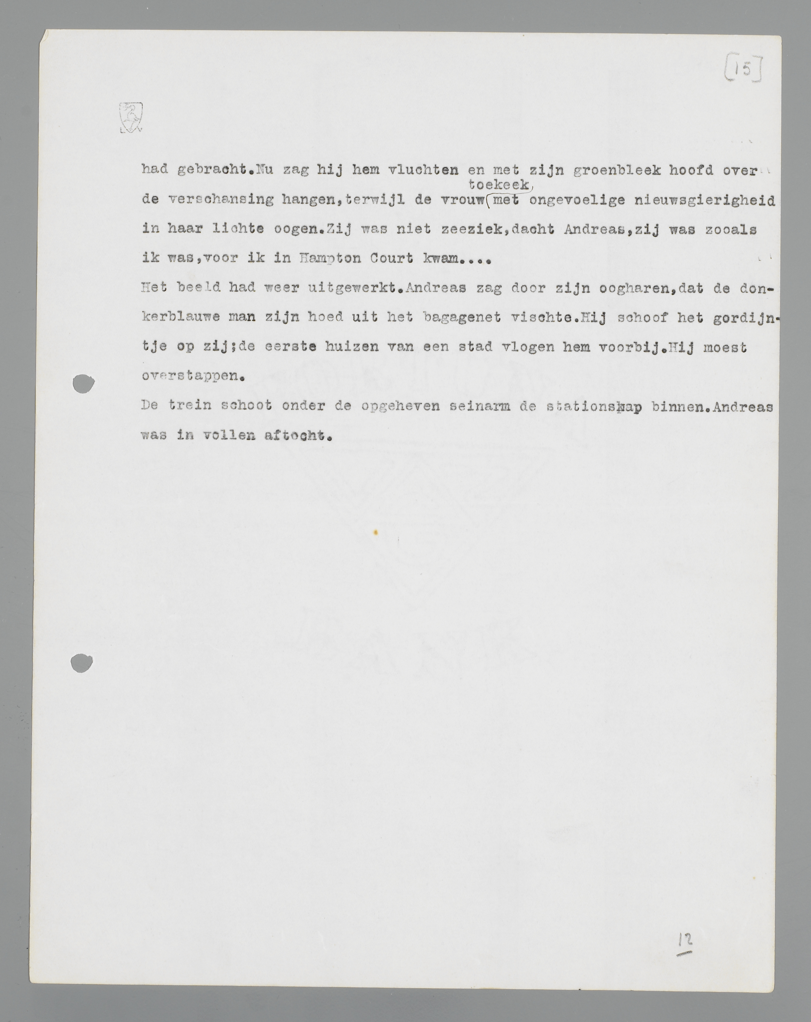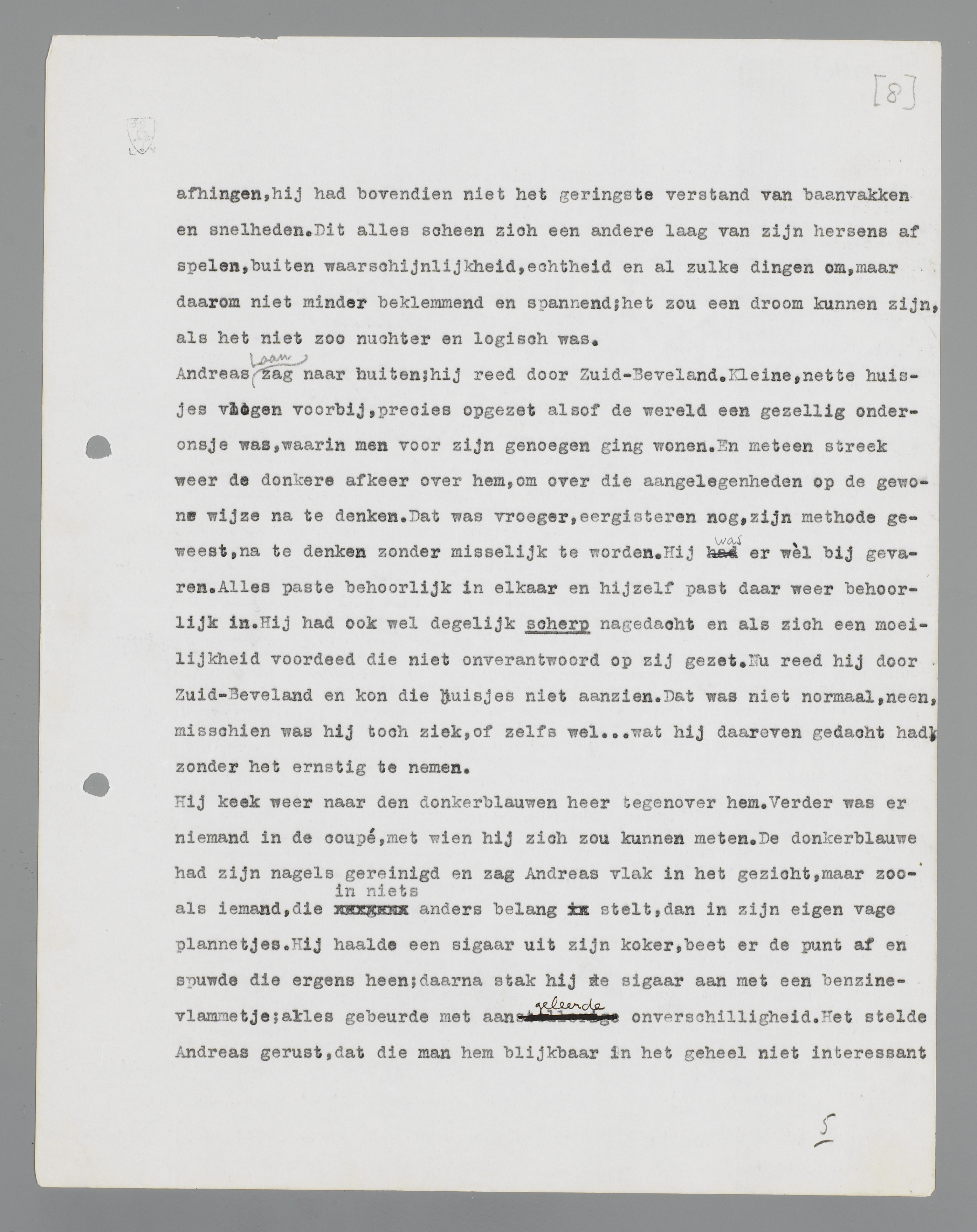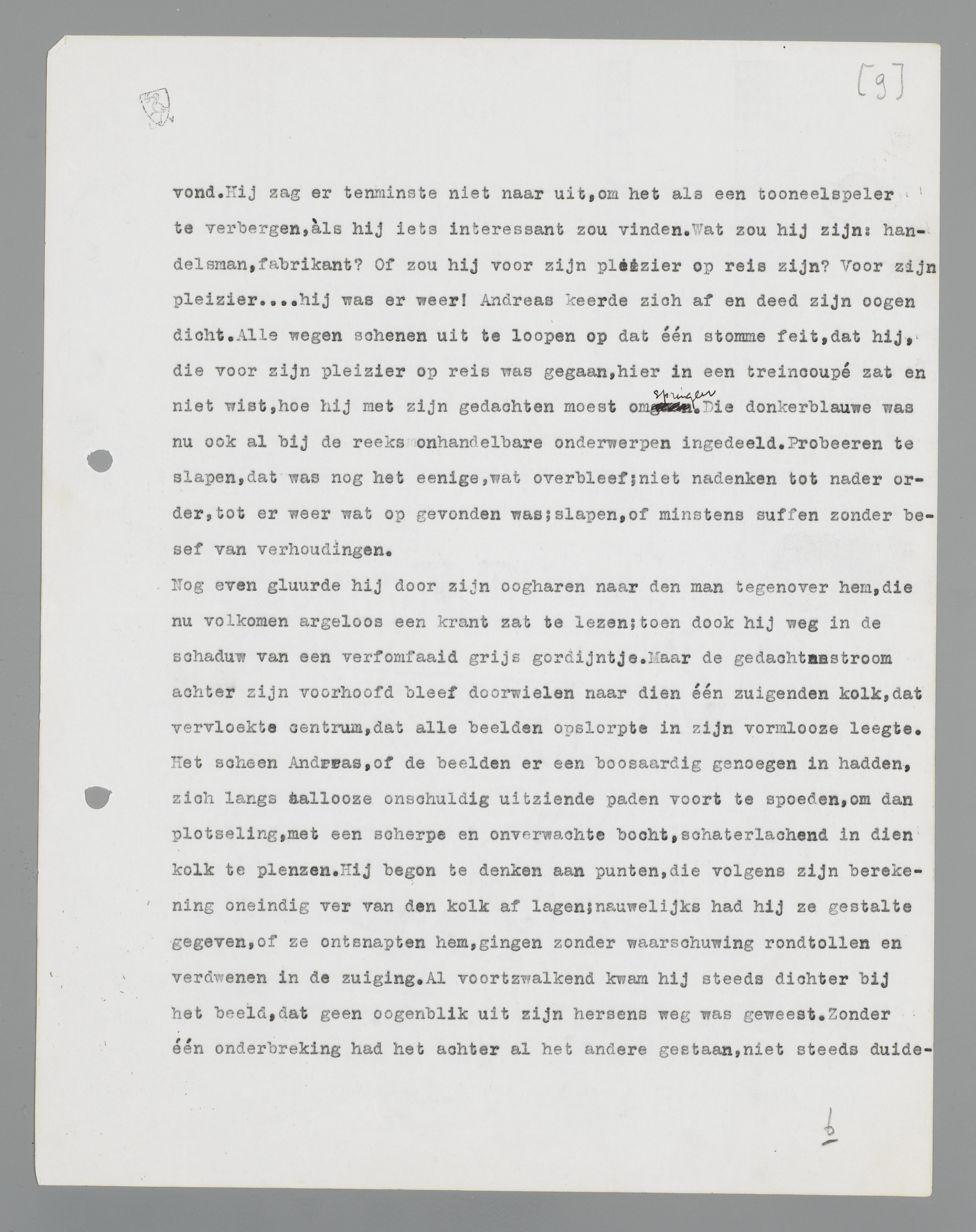 Het beeld had weer uitgewerkt. Andreas zag door zijn oogharen, dat de donkerblauwe man zijn hoed uit het bagagenet vischte. Hij schoof het gordijntje op zij; de eerste huizen van een stad vlogen hem voorbij. Hij moest overstappen.