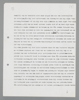 Hij keek weer naar den donkerblauwen heer tegenover hem. Verder was er niemand in de coupé, met wien hij zich zou kunnen meten. De donkerblauwe had zijn nagels gereinigd en zag Andreas vlak in het gezicht, maar zooals iemand, die in niets anders belang stelt, dan in zijn eigen vage plannetjes. Hij haalde een sigaar uit zijn koker, beet er de punt af en spuwde die ergens heen; daarna stak hij de sigaar aan met een benzinevlammetje; alles gebeurde met een aangeleerde onverschilligheid. Het stelde Andreas gerust, dat die man hem blijkbaar in het geheel niet interessant vond. Hij zag er tenminste niet naar uit, om het als een toneelspeler te verbergen, àls hij iets interessant zou vinden. Wat zou hij zijn: handelsman, fabrikant? Of zou hij voor zijn pleizier op reis zijn? Voor zijn pleizier.... hij was er weer! Andreas keerde zich af en deed zijn oogen dicht. Alle wegen schenen uit te loopen op dat ééne stomme feit, dat hij, die voor zijn pleizier op reis was gegaan, hier in een treincoupé zat en niet wist, hoe hij met zijn gedachten moest omspringen. Die donkerblauwe was nu ook al bij de reeks onhandelbare onderwerpen ingedeeld. Probeeren te slapen, dat was nog het eenige, wat overbleef; niet nadenken tot nader order, tot er weer wat op gevonden was; slapen, of minstens suffen zonder besef van verhoudingen.