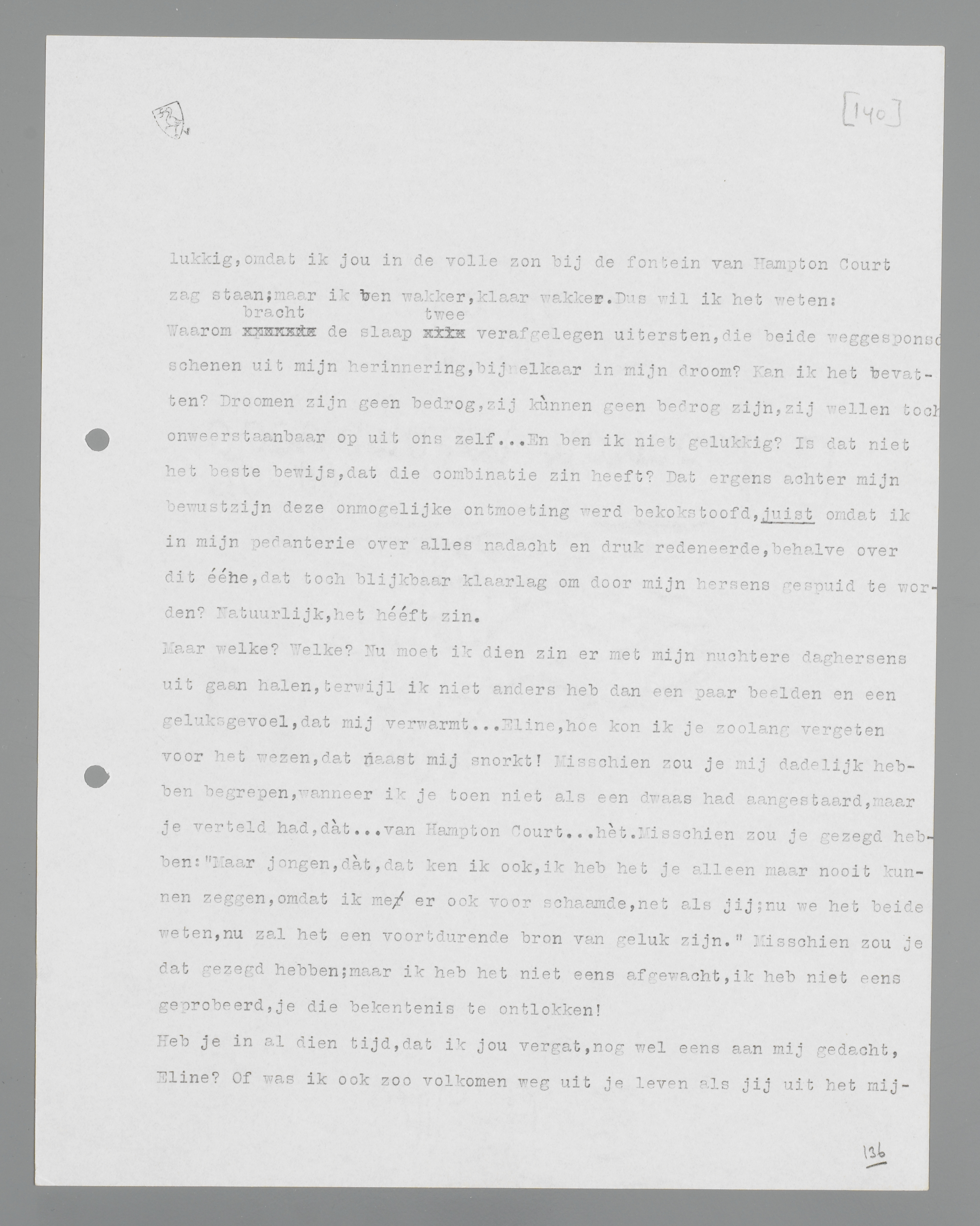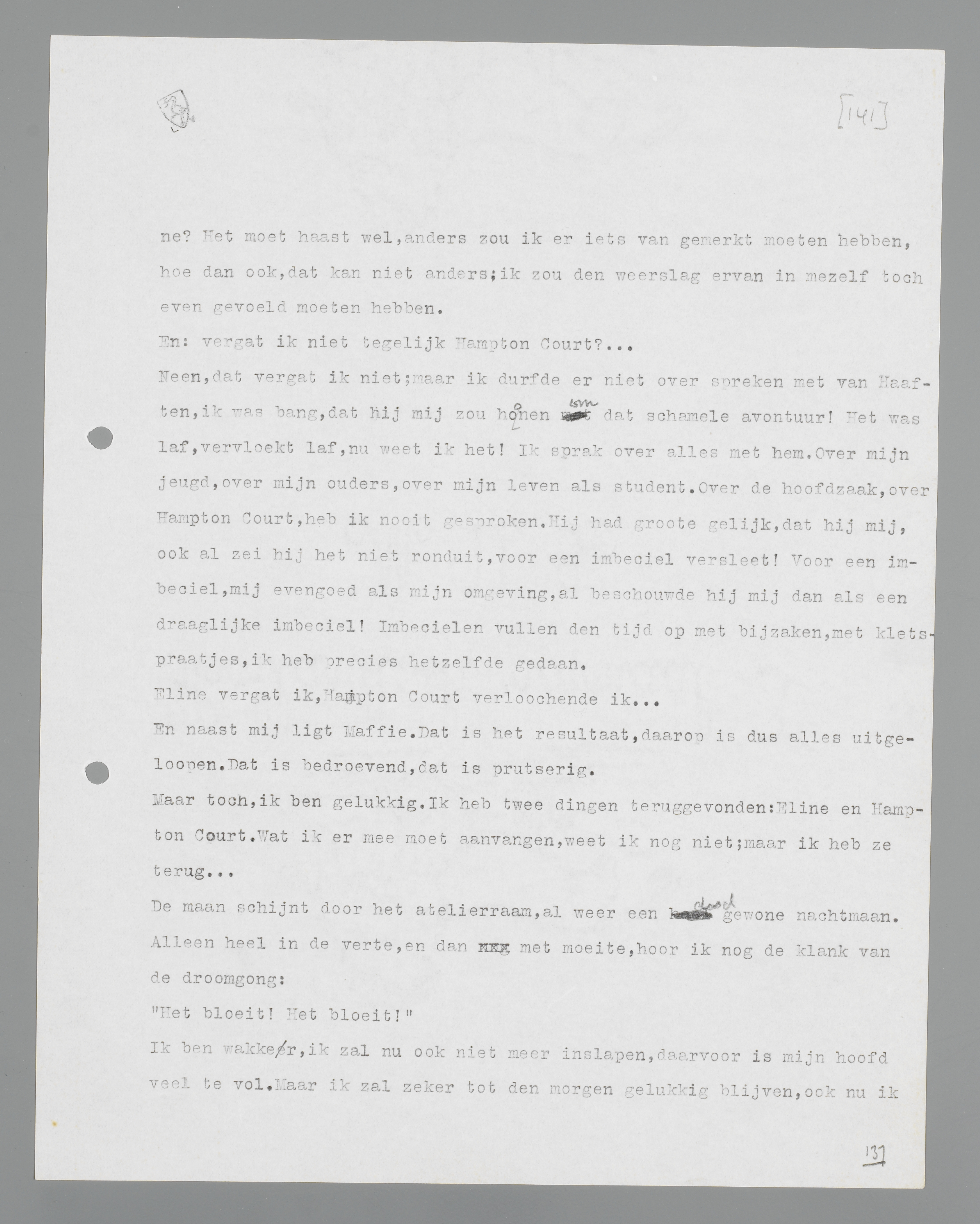 Maar toch, ik ben gelukkig. Ik heb twee dingen teruggevonden: Eline en Hampton Court. Wat ik er mee moet aanvangen, weet ik nog niet; maar ik heb ze terug....