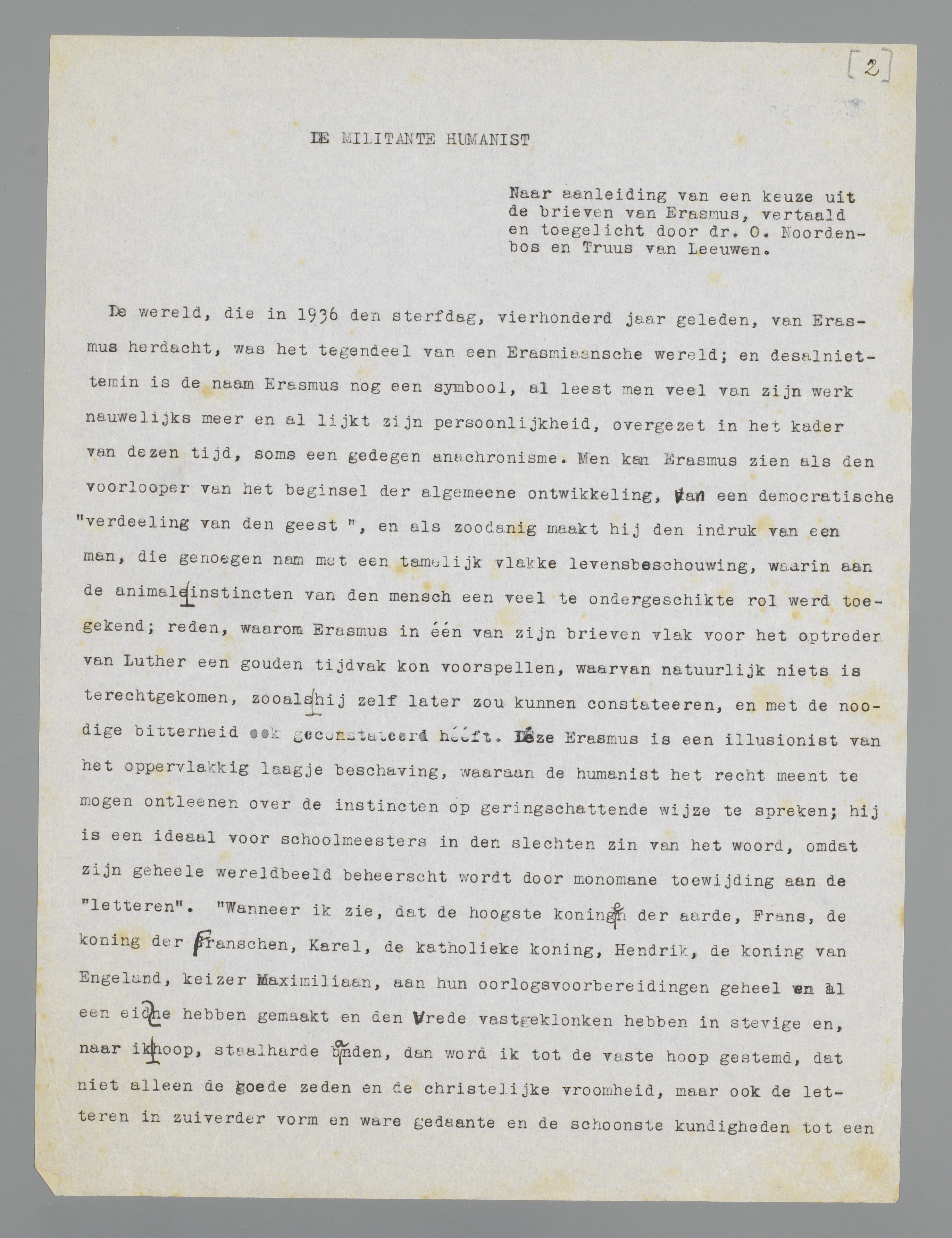 Naar aanleiding van een keuze uit de brieven van Erasmus, vertaald en toegelicht door dr. O. Noordenbos en Truus van Leeuwen.