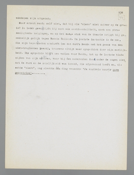 orde, methode, hiërarchie (zonder hiërarchisch vooroordeel overigens), uit zijn reserves tegenover de jagers op het bijzondere, de litteraturen, en zijn stillen hartstocht voor het studeervertrek. In dit leven overheerscht de continuïteit; de stof voor tragische conflicten, die er geweest is, wordt niet verzwegen, maar gedemonstreerd als ondergeschikt aan het clerckeninstinct. De ‘sublimeering’ door de cultuur, in negenennegentig van de honderd gevallen een halve of driekwart-mislukking, is hier volkomen geslaagd, zonder dat zij overgeslaagd is en een parvenu of een schoolfrik heeft achtergelaten.