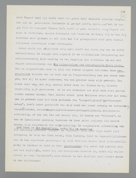 Wanneer men dus zegt, dat Thomas Mann geen polemische natuur is, dan zegt men daarmee nog allerminst, dat hij objectieve gerechtigheid wil uitoefenen. Zijn opstellen over b.v. Goethe, Wagner, Cervantes (Leiden und Grösse der Meister) dragen wel degelijk het stempel van zeer persoonlijke ontmoetingen. De polemiek echter is een quaestie van temperament, en iemand, die niet polemisch is, zal het ook nooit worden, al is hij nog zoo critisch. In den genoemden bundel b.v. bouwt Mann zoowel Goethe als Wagner uit negatieve kenmerken op; over Wagner zegt hij zelfs voor een groot deel dezelfde scherpe dingen, die ook de polemische Nietzsche al gezegd heeft; maar... c'est le ton qui fait la musique! Thomas Mann heeft er geen behoefte aan, Wagner uit zich te verbannen, zooals Nietzsche dat trachtte te doen; hij is hem bij voorbaat zeer genegen en zal zich van die genegenheid door geen enkele critische observatie laten afbrengen.