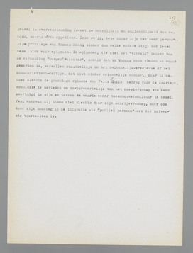verlangen) van den ‘dichter’ in zich te vereenigen. In laatste instantie is ieder mensch, ook Thomas Mann, de innerlijk verdeelde, toch weer een eenheid; die eenheid vindt men, als ik goed zie, bij dezen schrijver in zijn toeschouwerschap. Het toeschouwerschap combineert, tot op zekere hoogte, de stabiliteit van den ‘burger’ en de aesthetische behoeften van den ‘dichter’; het vereenigt de belangstelling voor de actie en het gebrek aan eigen actie in een synthese... de synthese, die men belichaamd vindt in Mann's houding in de emigratie.