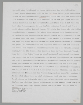 Man soll sich fortwährend vor Augen halten, dass der mittelalterliche ‘Staat’ seinen Schwerpunkt nicht in der Antithese Kaiser-Papst hat, sondern gerade in deren wesentlicher Einheit. Vielleicht mag das etwas unwahrscheinlich aussehen für eine Zeit, die schliesslich in den gewaltigen katastrophalen Ausbrüchen des Investiturkampfes gipfelt; dennoch ist diese Einheit eine Bedingung, ohne die der Konflikt zwischen Heinrich und Gregor nicht einmal denkbar ist. Auch Gregor VII. setzte das Regnum als eine Selbstverständlichkeit voraus; er hat nicht daran gedacht, es zu beseitigen; nur um Befugnisse und Abgrenzungen, an letzter Stelle um die Oberhoheit in der Ecclesia wurde der Kampf eingesetzt.80 Man drückt sich richtig aus, wenn man sagt, dass nicht zwischen Kaiser und Papst, sondern zwischen kaiserlicher und päpstlicher Oberherrschaft ein Gegensatz entstanden ist. Auf dem Boden der Einheit von Regnum und
