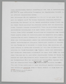 übrigen ist das augustinische System in seinen praktischen Konsequenzen ebensowenig ‘spekulativ’ wie z.B. das liberale des neunzehnten Jahrhunderts; es ist ebenso fest verbunden mit der Realität wie jede zur Anwendung gebrachte Gesellschaftstheorie. Gewiss ist es nicht übertrieben, wenn man sagt, dass das Wort ‘Tyrannus’ den Diplomaten des ottonischen Zeitalters ein geläufiger und selbstverständlicher, äusserst konkreter Ausdruck war, dem man weniger einen Gefühlswert als einen rein sachlichen Gehalt beizumessen hat. Kurz, Augustins Schöpfung, die ‘Civitas Dei’, hat für die Quellen des zehnten Jahrhunderts nicht die Bedeutung eines gelesenen und kritisierten Buches, sondern eines mit dem Gedankenleben unscheidbar verbundenen Ideenarsenals.