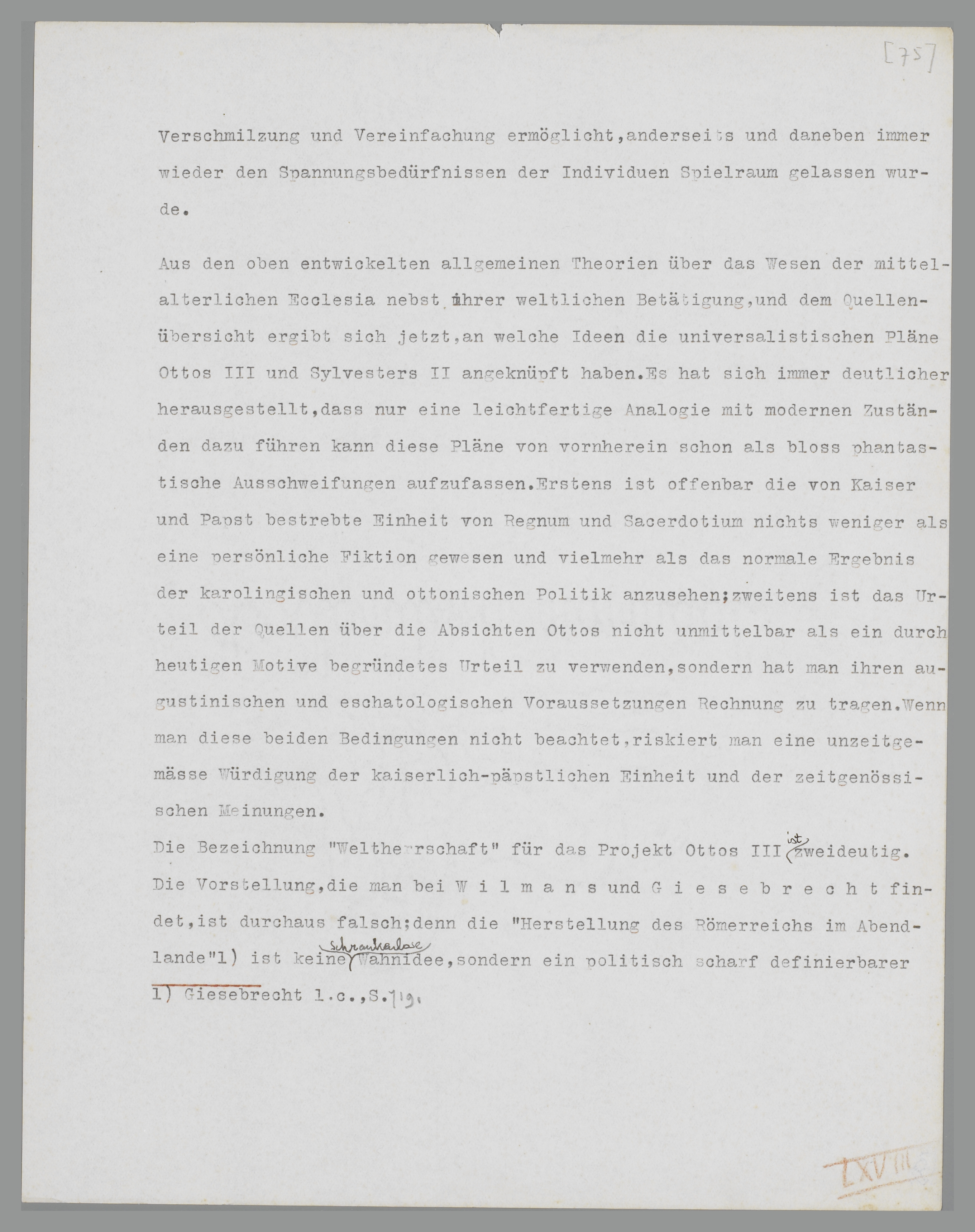 Aus den oben entwickelten allgemeinen Theorien über das Wesen der mittelalterlichen Ecclesia einschliesslich ihrer weltlichen Betätigung, und aus der Quellenübersicht ergibt sich jetzt, an welche Ideen die universalistischen Pläne Ottos III. und Silvester II. angeknüpft haben. Es hat sich immer deutlicher herausgestellt, dass nur eine leichtfertige Analogie mit modernen Zuständen dazu führen kann, diese Pläne von vornherein als bloss phantastische Ausschweifungen aufzufassen. Erstens ist offenbar die von Kaiser und Papst erstrebte Einheit von Regnum und Sacerdotium nichts weniger als eine persönliche Fiktion gewesen, sondern vielmehr als das