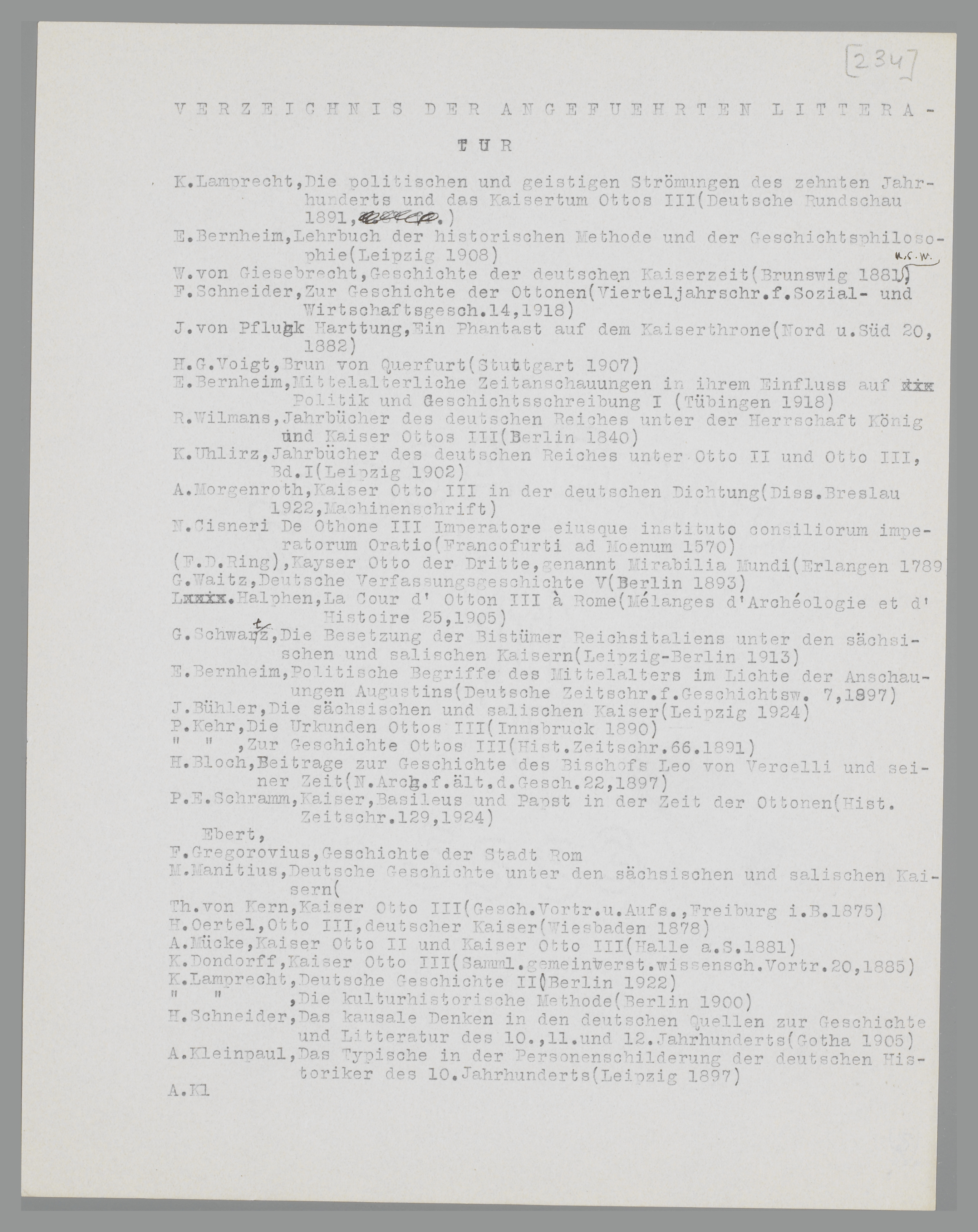 Verzeichnis der im Text und in den Anmerkungen angefuehrten Literatur