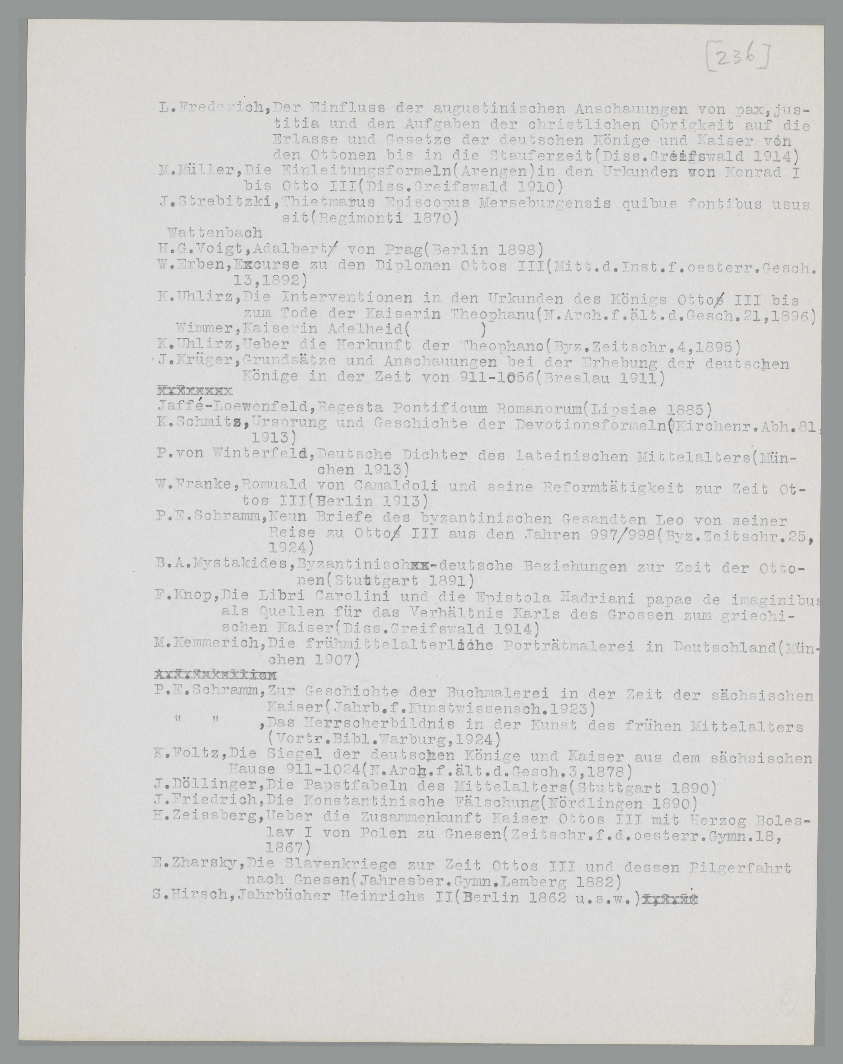 | P.E. Schramm, Kaiser, Basileus und Papst in der Zeit der Ottonen (Hist. Zeitschr. 129, 1924). |