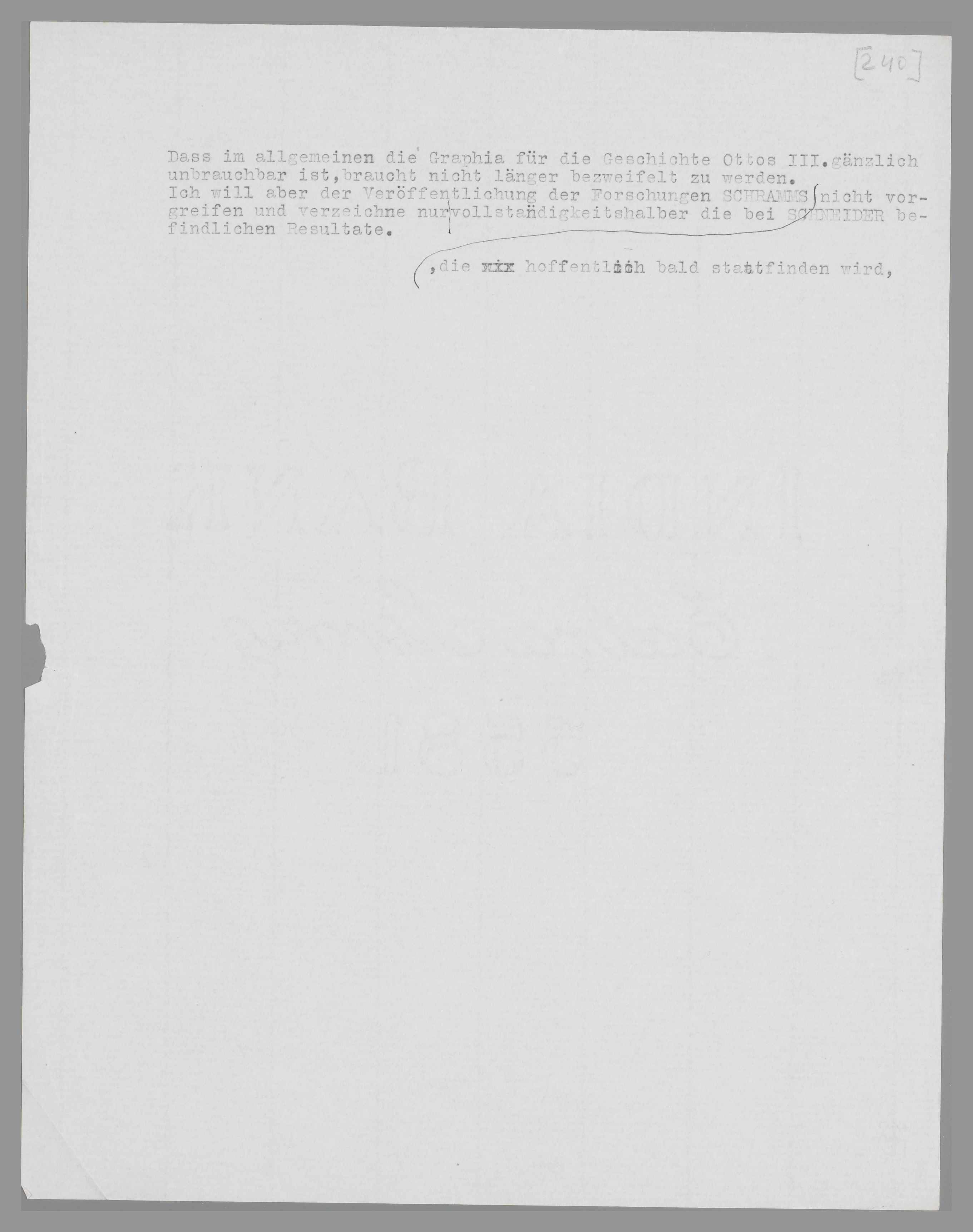 Ich will aber der Veröffentlichung der Forschungen Schramms, die hoffentlich bald erfolgen wird, nicht vorgreifen und verzeichne nur vollständigkeitshalber die bei Schneider angeführten Resultate.