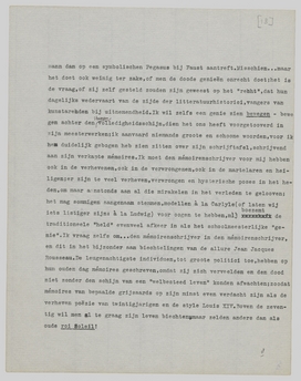 lischen Pegasus bij Faust aantreft. Misschien... maar het doet ook weinig ter zake, of men de doode genieën onrecht doet; het is de vraag, of zij zelf gesteld zouden zijn geweest op het ‘recht’, dat hun dagelijks wedervaart van de zijde der litteratuurhistorici, vangers van kunstarenden bij uitnemendheid. Ik wil zelfs een genie zien bewegen - bewegen achter den starren volledigheidsschijn, dien het ons heeft voorgetooverd in zijn meesterwerken; ik aanvaard niemands groote en schoone woorden, voor ik hem duidelijk gebogen heb zien zitten over zijn schrijftafel, schrijvend aan zijn verkapte mémoires. Ik moet den mémoirenschrijver voor mij hebben ook in de verhevenen, ook in de verwrongenen, ook in de martelaren en heiligen; er zijn te veel verheven, verwrongen en hysterische poses in het heden, om maar aanstonds aan al die mirakelen in het verleden te gelooven; het mag sommigen aangenaam stemmen, modellen à la Carlyle (of laten wij iets listiger zijn: à la Ludwig) voor oogen te hebben, mij boezemt de traditioneele ‘held’ evenveel afkeer in als het schoolmeesterlijke ‘genie’. Ik vraag zelfs om... den mémoirenschrijver in den mémoirenschrijver, en dit in het bijzonder aan biechtelingen van de allure Jean Jacques Rousseau. De leugenachtigste individuen, tot groote politici toe, hebben op hun ouden dag mémoires geschreven, omdat zij zich verveelden en den dood niet zonder den schijn van een ‘welbesteed leven’ konden afwachten; zoodat mémoires van bepaalde grijsaards op zijn minst even