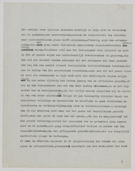 Het schijnt voor tallooze menschen moeilijk te zijn zich te verzoenen met de gedachte, dat meesterwerken, waarom de classiciteit een valschen maar indrukwekkenden glans heeft gesponnen, afkomstig zijn van medemenschen, die aan geen enkel biologisch aanwijsbaar structuurverschil onderhevig waren. Blijkbaar acht men het beleedigend voor zichzelf om niet op één of andere wijze aan wonderbaarlijk bevoorrechten te gelooven, die dus ook per mirakel konden scheppen uit het niets; men wil deze genieën dan nog wel een aantal ritueel vastgestelde stuiptrekkingen toestaan, die aan de baring van het meesterwerk voorafgaan, maar men wil het genie vooral niet als medemensch en zijn werk niet als mémoires. En daarom krijgt iemand op een zeker tijdstip des levens genoeg van de officieele genieën, of zij nu van Schopenhauer dan wel van Emil Ludwig afstammen, en in het bijzonder van de muziekgenieën, die altijd gelauwerd worden door de critici van een zeker allooi; hij krijgt er een boosaardig pleizier in, al dat schijnbaar volledige en harmonische en heroïsche te gaan verkleinen en verscheuren en verburgerlijken. Dan zien de heldenvereerders u misnoegd aan en zij mompelen iets van: ‘dat het genie wel banaliteiten geleefd heeft, maar dat juist de vonk van het genie...’ En dan