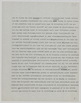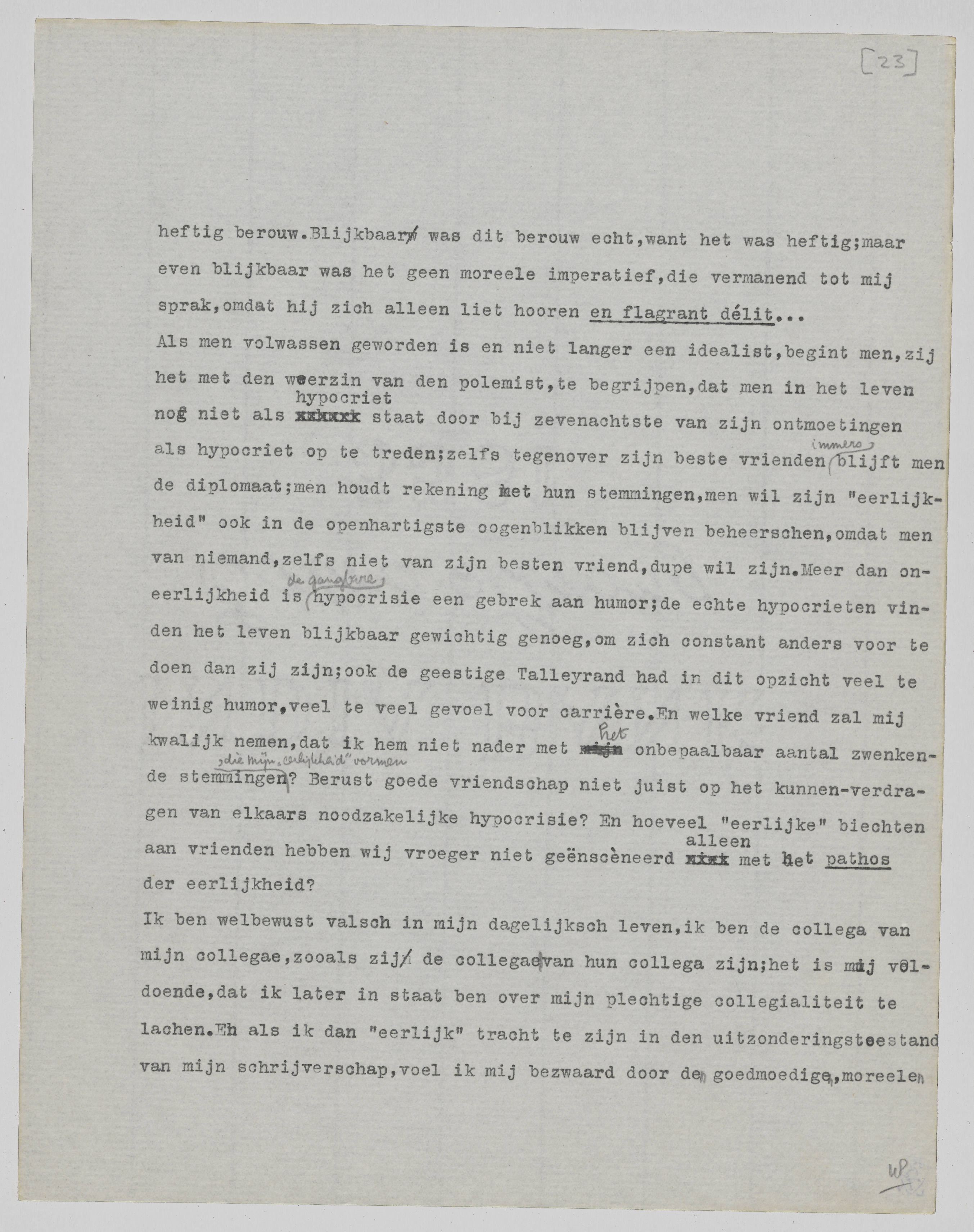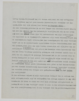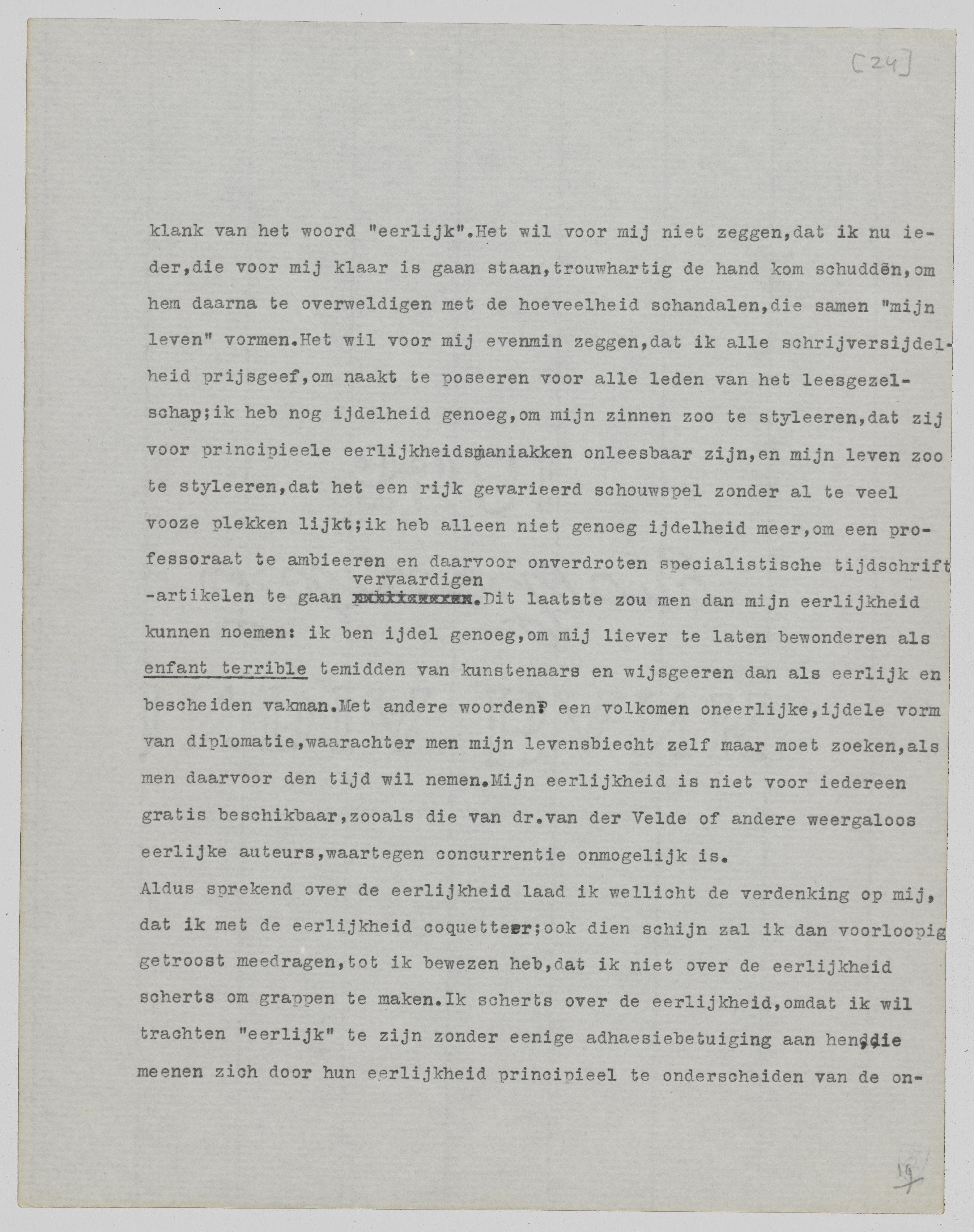 Aldus sprekend over de eerlijkheid laad ik wellicht de verdenking op mij, dat ik met de eerlijkheid coquetteer; ook dien schijn zal ik dan voorloopig