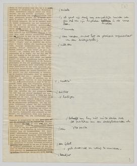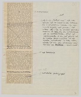 aan de gebruikelijke vooroordeelen der maatschappij; zij blijken niet anders te zijn dan hulpmiddelen om den mensch het bestaan te vergemakkelijken en tegenover de ‘laatste raadselen’ geen stand te houden. Heeft men eenmaal ervaren, dat de woorden op de laatste consequentie hunner beteekenissen kapot breken, dat, anders gezegd, de ‘werkelijkheid’ zich niet in een systeem van woorden laat oplossen, aangezien zulk een systeem onmiddellijk zijn ontoereikendheid bewijst, doordat het een ander gesloten systeem van woorden als gelijkgerechtigd naast zich moet dulden, dan komt men tot de laatste consequentie (die immers tevens de eerste inconsequentie is!) van het begrip. Men krijgt er dan genoeg van een anderen systeembouwer waarheden af te grissen, of zich in het bijzonder in te spannen om onvergankelijke privileges te verkrijgen voor ‘eigen waarheden’; men aanvaardt zijn eigen geheel van redeneeringen als een noodzakelijke systematiseering, omdat men nu eenmaal, als men van de taal als communicatiemiddel gebruik maakt, niet buiten een systeem kan zonder een warhoofd te worden (en zelfs warhoofden hebben nog geniale systemen!); maar door de paradox te aanvaarden als het Ultima Thule van de taal, zal men zelfs in zijn ‘heiligst vuur’ niet meer optreden met het accent van den ketterjager, die in het geloof aan woorden zijn voornaamste bijgeloof heeft gevonden. Het systeem zelf is hier een paradox geworden; want slechts aan den toon van den systeembouwer zal men voortaan trachten te raden, of hij het woordencomplex al dan niet gebruikt met de innerlijke bereidvaardigheid het als tijdelijke ‘kris-