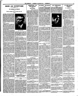 De regisseur, heeft prof. Leopold Jessner gisteren gezegd, is een kunstenaar, die precies weten moet wat hij doet; hij is meer kapitein, strateeg, architect dan kunstenaar in den zin van Goethe, wiens ‘Bilde Künstler, rede nicht’, nog geen rekening kon houden met het bestaan van den regisseur. De regie als zelfstandige kunstvorm is jong. Zij hangt samen met de ontwikkeling van de moderne tooneeltechniek, die den toeschouwer illusie kon verschaffen, waaraan een eeuw geleden zelf geen fantast zou hebben kunnen denken. Men moet de regie als zelfstandige uiting van de menschelijke verbeeldingskracht in verband brengen met de neiging om de wereld achter illusie te verbergen, om het leven in een betrekkelijk klein bestek schooner, completer en spannender voor te dragen dan het is.