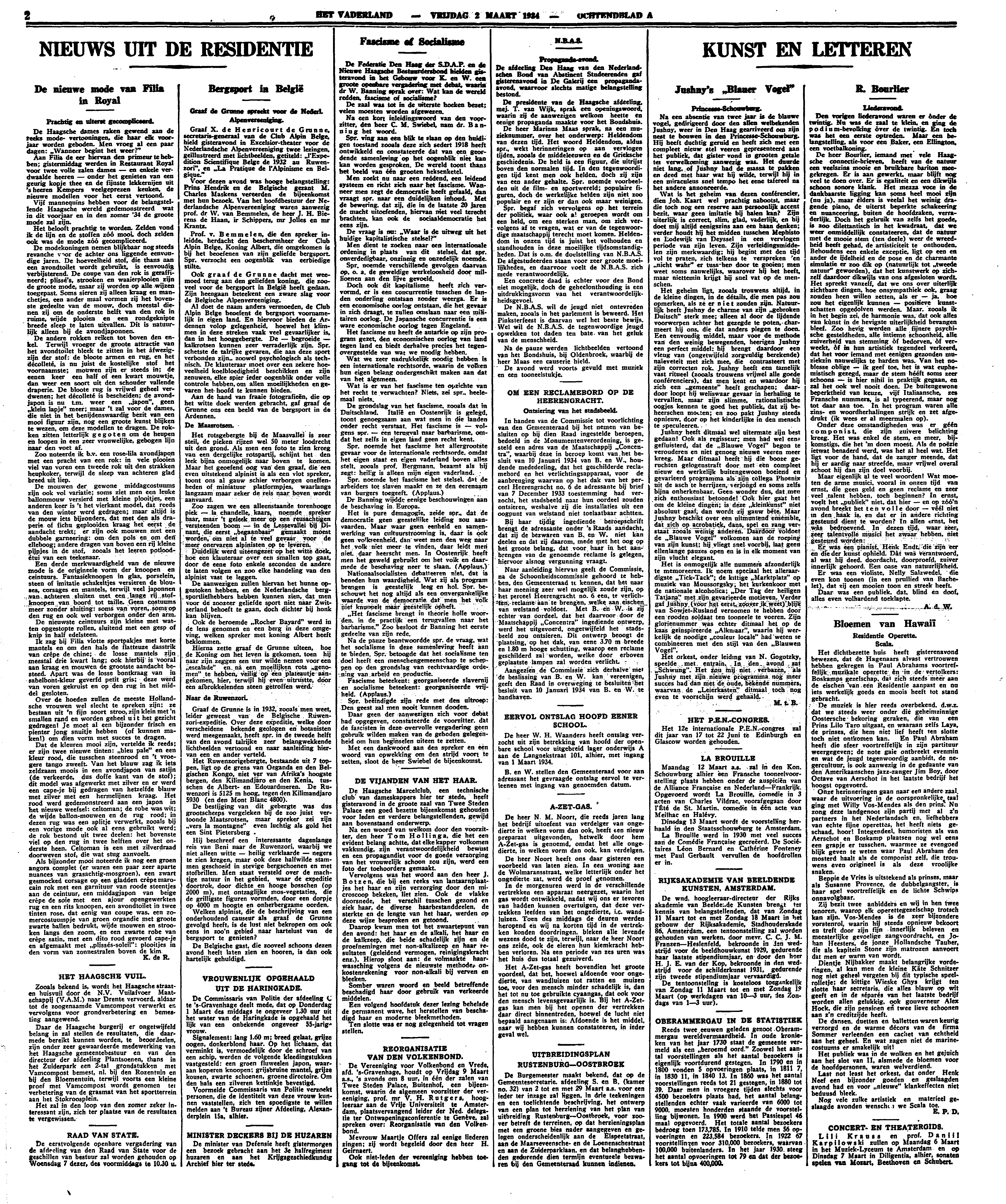 Het orkest, onder leiding van N. Gogotzky, speelde met entrain. In den avond zat ‘Schwung’. Het zou mij niet verbazen, als Jushny met zijn nieuwe programma nog meer succes had dan met de oude, bekende nummers, waarvan de ‘Leierkasten’ ditmaal toch nog even te voorschijn werd gehaald.