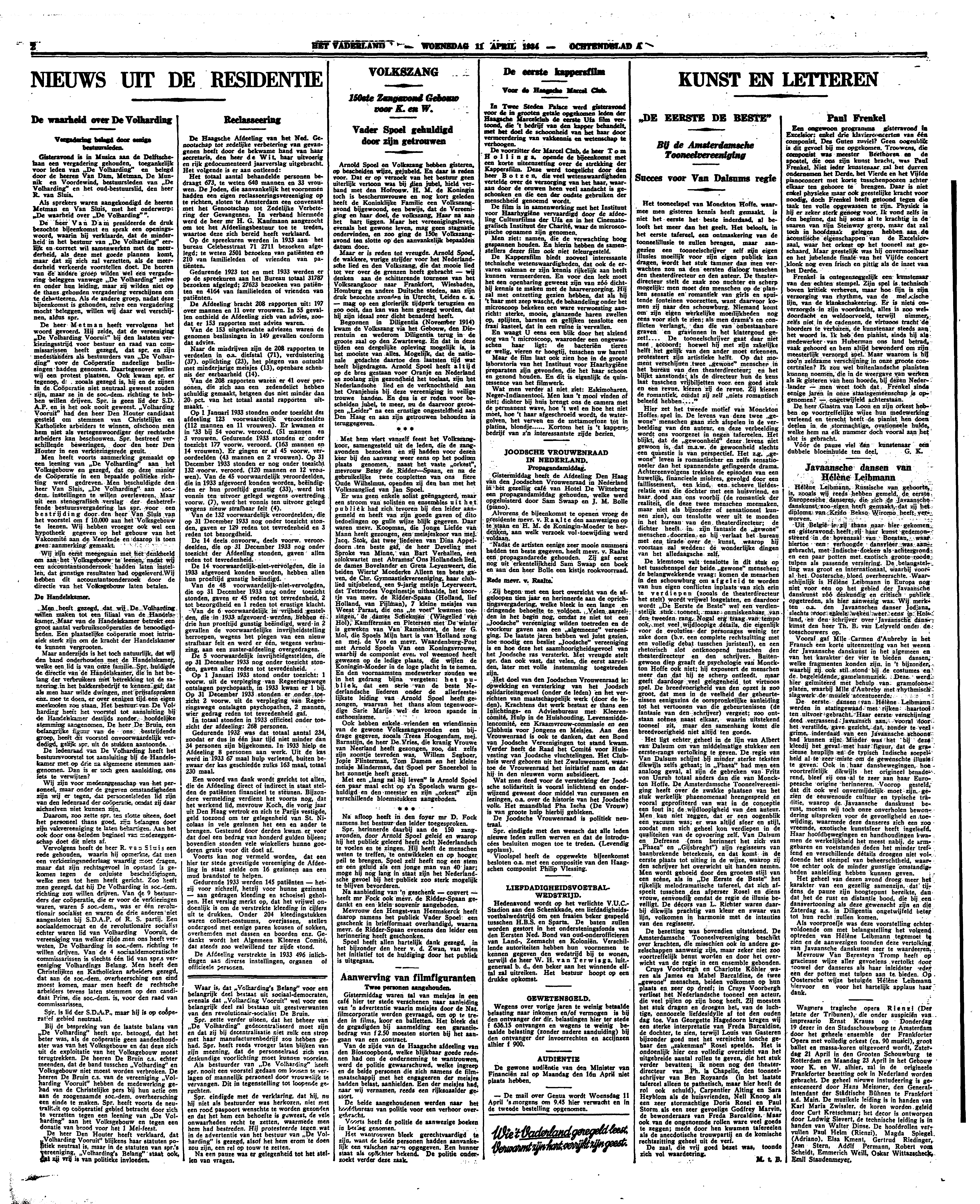 De klemtoon valt tenslotte in dit stuk op het tusschenspel der beide ‘gewone’ menschen; de belangwekkende vraag: komen de menschen in den schouwburg om afgeleid te worden van hun eigen conflicten inplaats van zich erin te verdiepen (zooals de theaterdirecteur het stelt) wordt vrijwel losgelaten, en daardoor wordt ‘De Eerste de Beste’ wel een verdienstelijk stuk tooneel, maar onmiskenbaar van den tweeden rang. Nogal erg traag van tempo ook, met veel wijdloopige détails, die eigenlijk voor de evoluties der personages weinig ter zake doen (b.v. een complete rechtszitting met een volledig debat tusschen juristen!), en een rhetorisch slot ontknoopend tusschen den theaterdirecteur en den schrijver. Buitengewoon diep graaft de psychologie van Monckton Hoffe ook niet; hij exposeert de menschen meer dan dat hij ze scherp ontleedt, maar geeft daardoor veel gelegenheid tot virtuoos spel. De breedvoerigheid van den opzet is zoo groot, dat men in de veelheid der gebeurtenissen eenigszins de oorspronkelijke aanleiding tot het vertoonen van die gebeurtenissen (de fantasie van den schrijver) vergeet; zoo ontstaan scènes naast elkaar, waarin uitstekend tooneel zit, maar den samenhang komt die breedvoerigheid niet altijd ten goede.