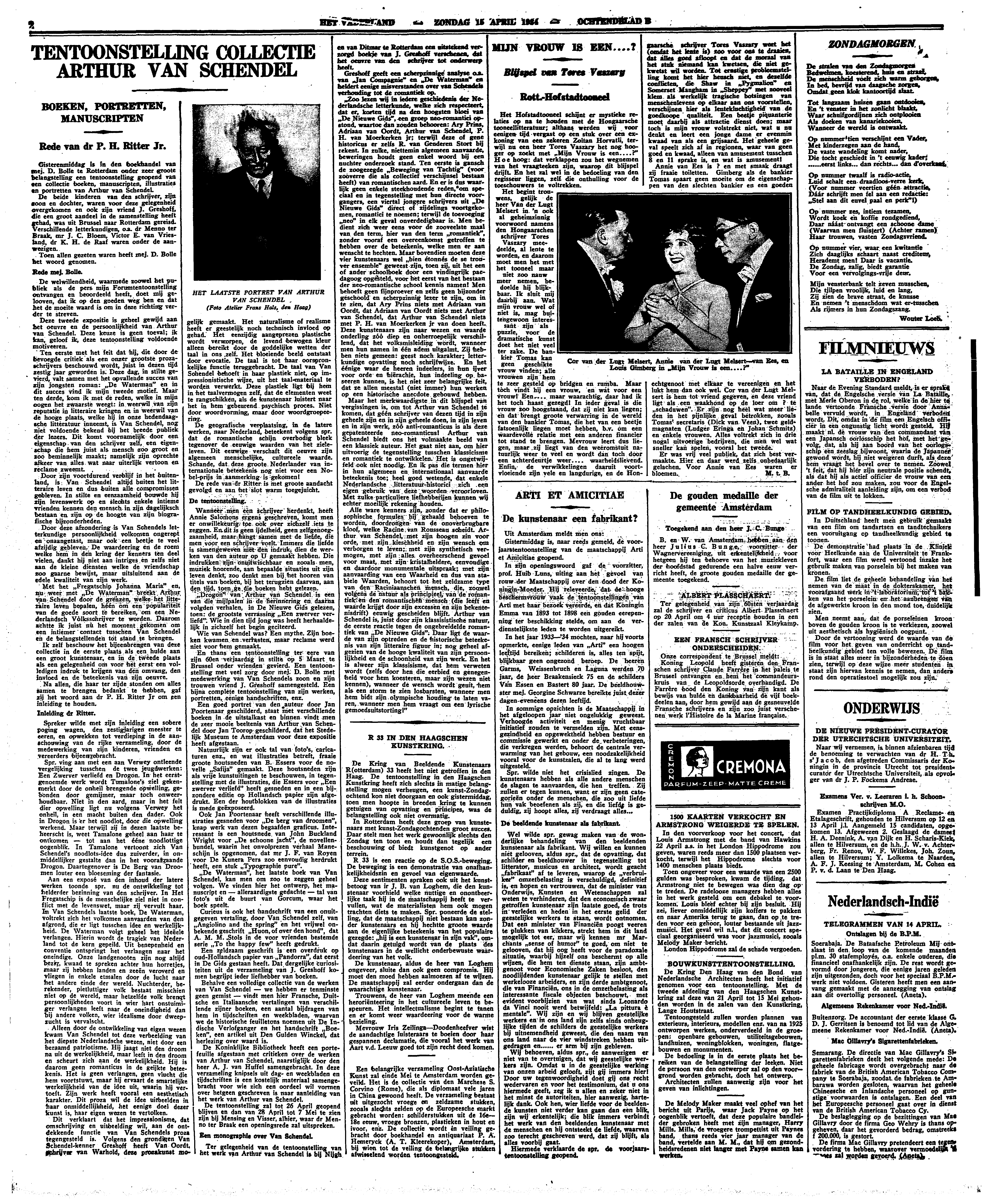 Het begint trouwens, gelijk de heer Van der Lugt Melsert in 'n ook al geheimzinnig voorwoord namens den Hongaarschen schrijver Tores Vaszary meedeelde, al lente te worden, en daarom moet men het met het tooneel maar niet zoo nauw meer nemen, bedoelde hij blijkbaar. Ik sluit mij daarbij aan. Wat mijn vrouw wel of niet is, mag buitengewoon interessant zijn als puzzle, voor de dramatische kunst doet het niet veel ter zake. De bankier Tomas kan geen geschikte vrouw vinden; alle vrouwen zijn hem te zeer gesteld op bridgen en rumba. Maar toch vindt hij een vrouw, en wat voor een vrouw! Een.... maar waarachtig, daar had ik het toch haast gezegd! In ieder geval is die vrouw zoo hoogstaand, dat zij niet kan liegen; en dat brengt groote verwarring in de wereld van den bankier Tomas, die het van een beetje fatsoenlijk liegen moet hebben, b.v. om een waardevolle relatie met een anderen financier tot stand te brengen. Mevrouw leert dus liegen, maar zij liegt van den weeromstuit natuurlijk weer te veel en wordt dan toch door een achterdeurtje weer.... waarheidslievend. Enfin, de verwikkelingen daaruit voortvloeiende zijn vele en langdurige, en de Hongaarsche schrijver Tores Vaszary weet het (omdat het lente is) zoo voor ons te draaien, dat alles goed afloopt en dat de moraal van het stuk niemand kan kwetsen, die niet gekwetst wil worden. Tot ernstige probleemstelling komt het hier heusch niet, en dezelfde conflicten, die Shaw in ‘Pygmalion’ en Somerset Maugham in ‘Sheppey’ met zooveel klem als werkelijk tragische botsingen van menschenlevens op elkaar aan ons voorstellen, verschijnen hier als lentekluchtigheid van de goedkoope qualiteit. Een beetje piquanterie moet daarbij als attractie dienst doen; maar toch is mijn vrouw volstrekt niet, wat u nu denkt en leert een jonge dame er evenmin kwaad van als een grijsaard. Het geheele geval speelt zich af in regionen, waar van geen goed en kwaad, alleen van amusement tusschen 8 en 11 sprake is, en wat is amusement!