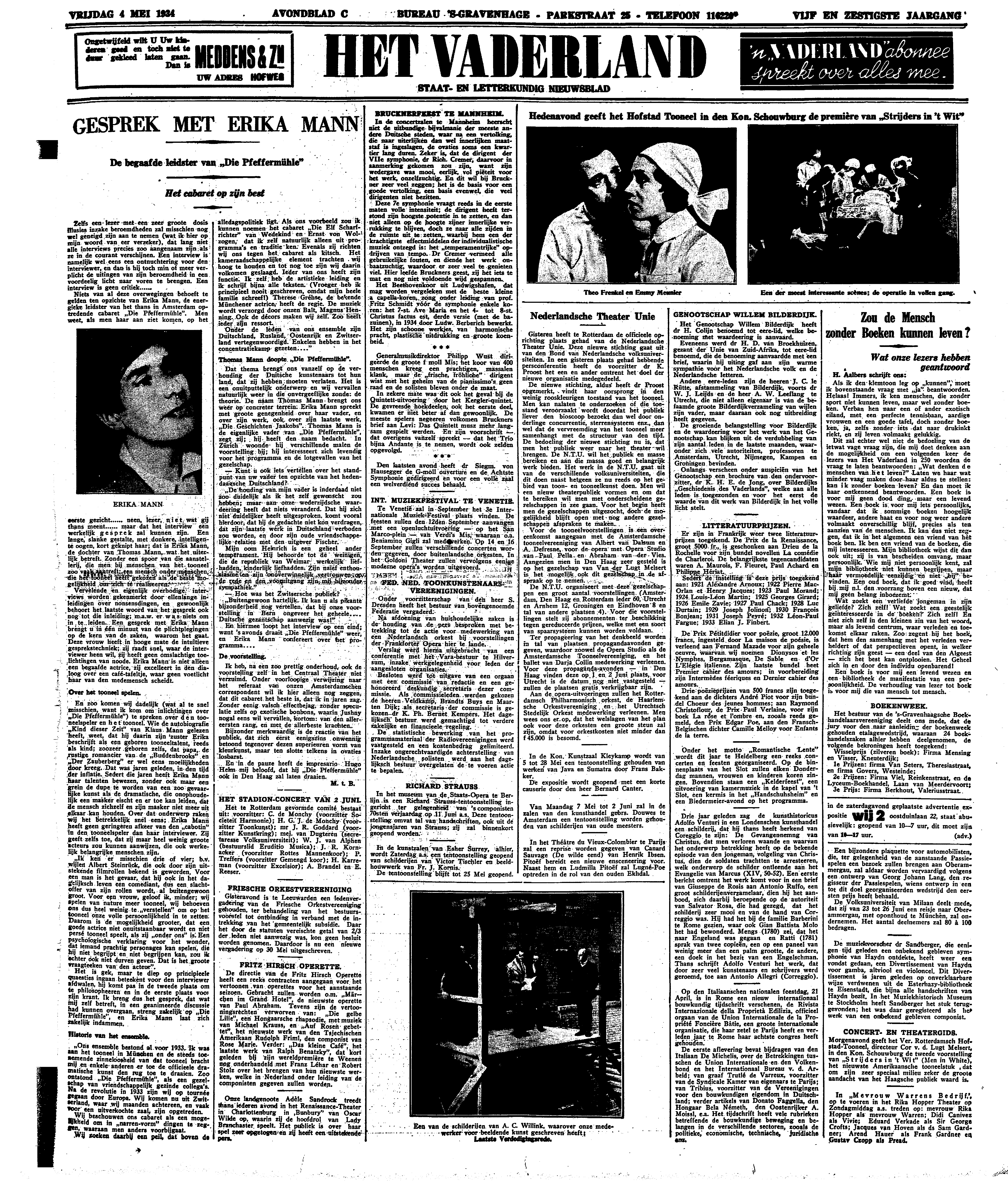En hiermee loopt het interview op een eind; want 's avonds draait ‘Die Pfeffermühle’ weer, en Erika Mann confereert over het programma....