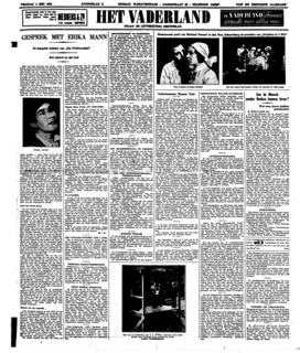Niets van al deze overwegingen behoeft te gelden ten opzichte van Erika Mann, de energieke leidster van het thans in Amsterdam optredende cabaret ‘Die Pfeffermühle’. Men weet, als men haar aan ziet komen, op het eerste gezicht...... neen, lezer, niet wat gij thans meent...... maar dat het interview een werkelijk gesprek zal kunnen zijn. Een lange, slanke gestalte, met donkere, intelligente oogen, kort geknipt haar; dat is Erika Mann, de dochter van Thomas Mann, wat het uiterlijk betreft. Zonder een spoor van die aanstellerij, die men bij menschen van het tooneel zoo vaak aantreft; een mensch onder menschen, die het tooneel heeft gekozen als de beste mogelijkheid om zich te realiseeren.