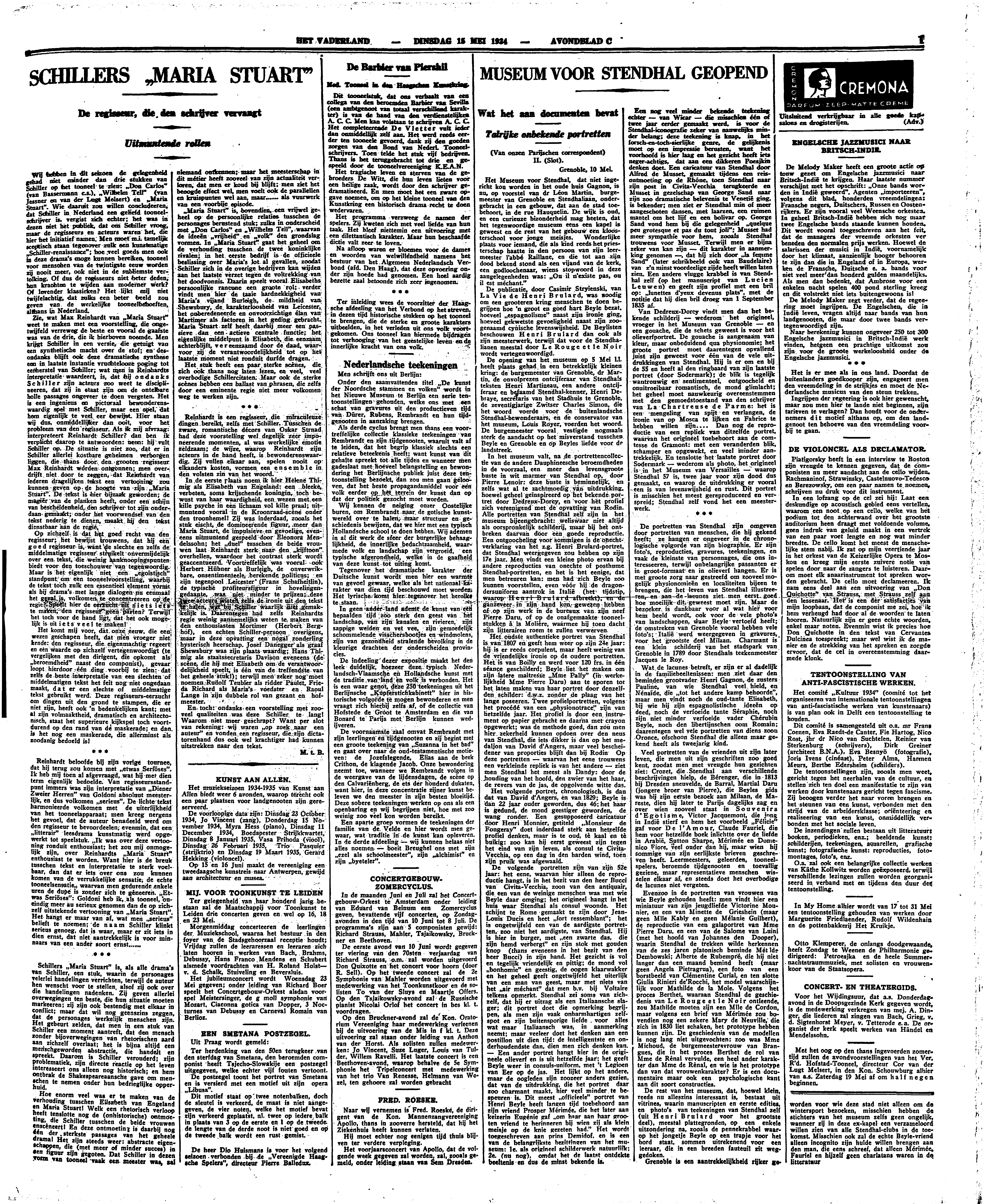 Wij hebben in dit seizoen de gelegenheid gehad niet minder dan drie stukken van Schiller op het tooneel te zien: ‘Don Carlos’ (van Bassermann c.s.), ‘Wilhelm Tell’ (van Jessner en van der Lugt Melsert) en ‘Maria Stuart’. Wie daaruit zou willen concludeeren, dat Schiller in Nederland een geliefd tooneelschrijver is, vergist zich echter; het was in dezen niet het publiek, dat om Schiller vroeg, maar de regisseurs en acteurs waren het, die hier het initiatief namen. Men moet m.i. tamelijk sceptisch staan tegenover zulk een kunstmatige ‘Schiller-renaissance’; hoe veel goeds men ook in deze drama's moge kunnen bereiken, tooneel voor menschen van de twintigste eeuw worden zij nooit meer, ook niet in de subliemste vertolking. Of dus de regisseurs niet beter deden, hun krachten te wijden aan moderner werk? Of levender klassieken? Het lijkt mij niet twijfelachtig, dat zulks een beter beeld zou geven van de werkelijke tooneelbehoeften, althans in Nederland.