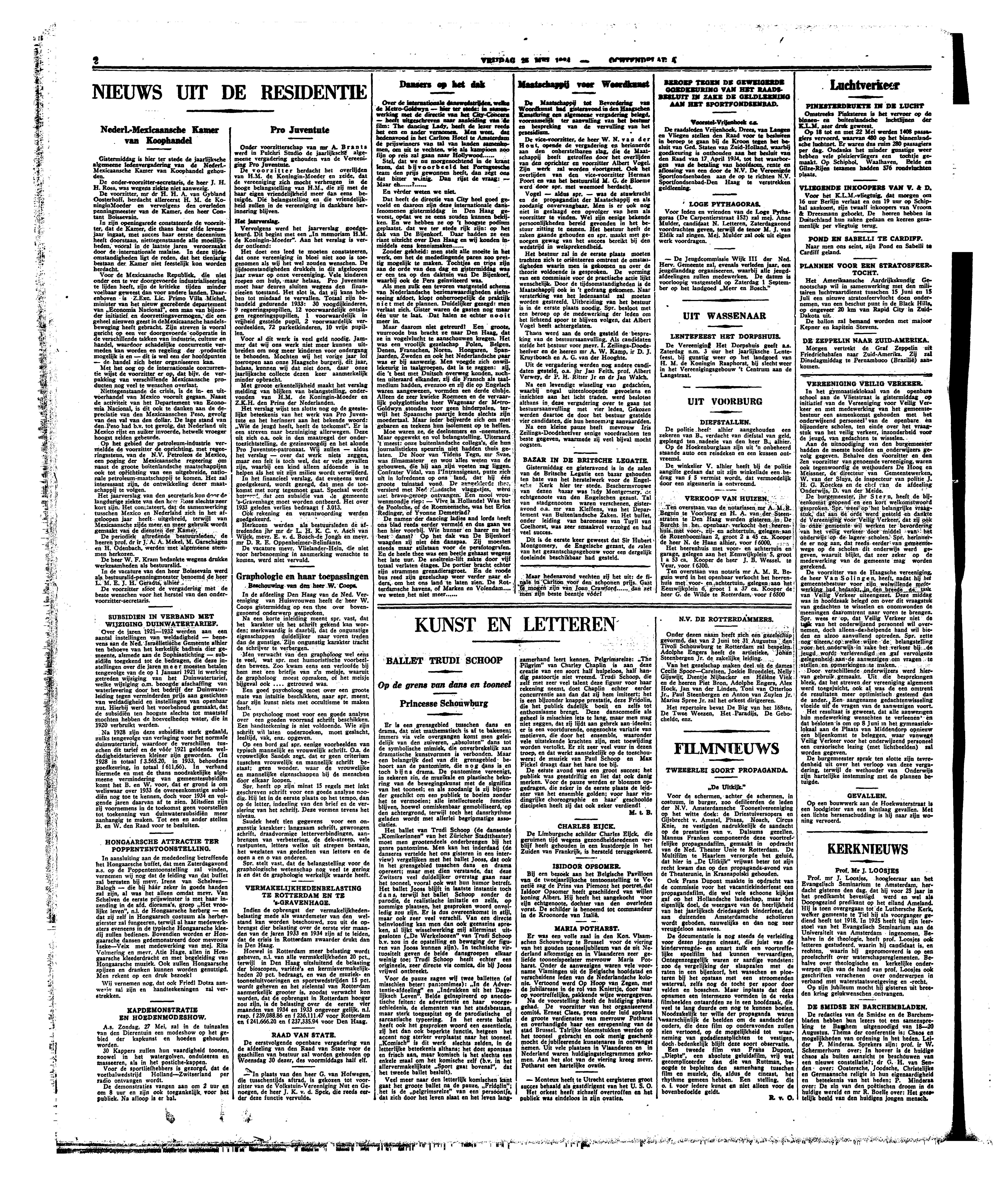 Voor de pauze zagen wij twee balletten (of misschien beter; pantomimes): ‘In de Advertentie-afdeeling’ en ‘Indrukken uit het Dagelijksch Leven’. Beide geïnspireerd op anecdotische feiten: de advertentie en haar voorgeschiedenis, de elementen van het stadsbestaan, maar sterk toegespitst op de parodistische of sarcastische typeering. In het eerste ballet heeft ook het gesproken woord een essentieele, zij het dan ook beperkte functie, hetgeen het accent nog sterker verplaatst naar het tooneel. ‘Komisch’ is dit werk slechts zelden, in de letterlijke beteekenis althans; het doet spontaan en frisch aan, maar komisch is het slechts een enkele maal om het komische zelf (b.v. in het allervermakelijkste ‘Sport gaat bovenal’, dat het tweede ballet besluit).