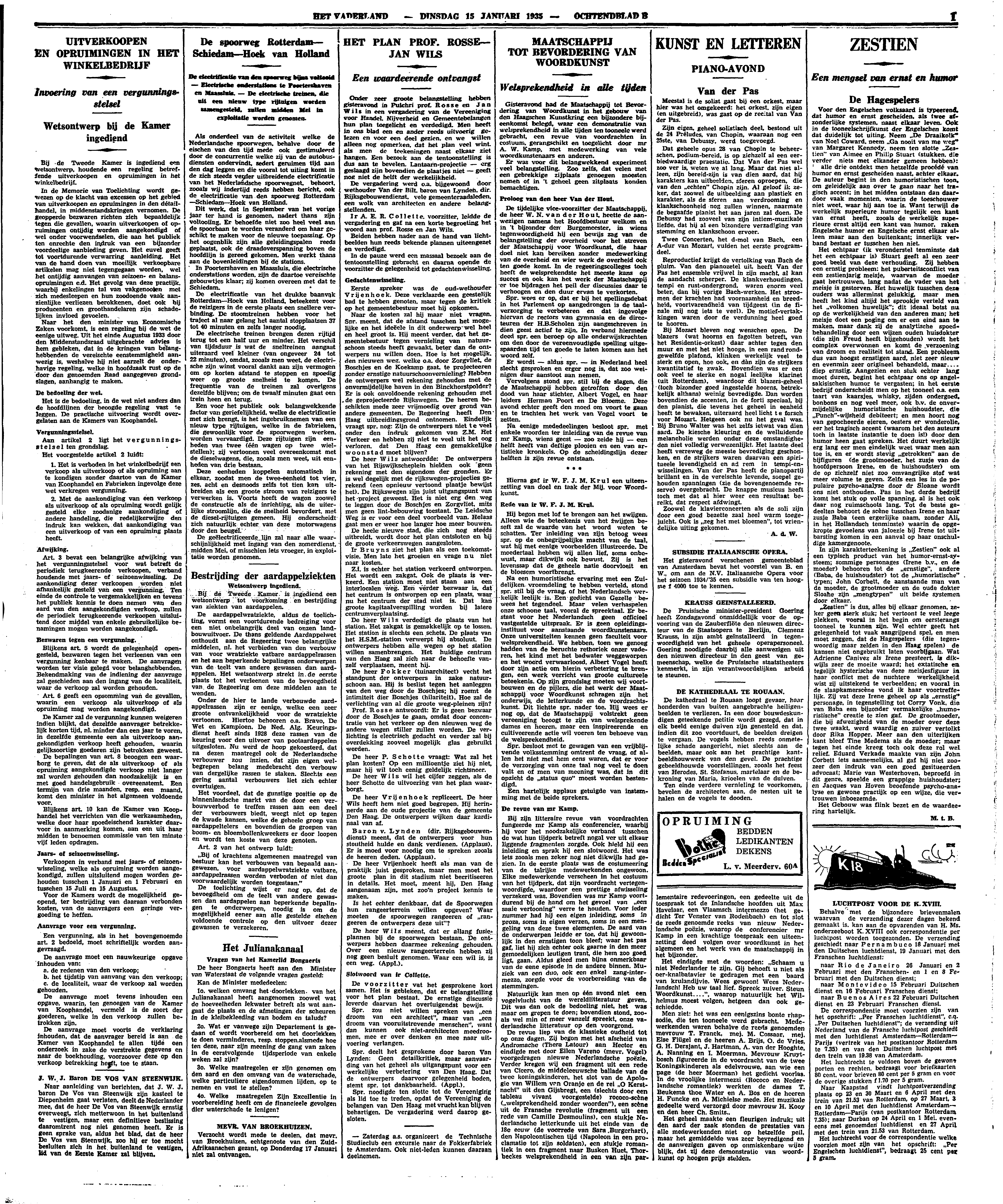 ‘Zestien’ is dus, alles bij elkaar genomen, zeker geen sterk stuk; het vertoont te veel leege plekken, vooral in het begin om eersterangs tooneel te kunnen zijn. Wel echter geeft het gelegenheid tot vaak aangrijpend spel, en men moet zeggen, dat de Hagespelers (die tegenwoordig maar zelden in den Haag spelen) de kansen niet ongebruikt laten voorbijgaan. Wat Adrienne Canivez als Irene presteert, is dikwijls zeer de moeite waard; het extatische en tegelijk hysterische van deze meisjesfiguur in haar conflict met de nuchtere werkelijkheid wist zij uitstekend te verbeelden; en vooral in de slaapkamerscène vond ik haar voortreffelijk. Zij vat deze Irene geheel op als ‘ernstig’ personage, in tegenstelling tot Corry Vonk, die van Baba een bijzonder vermakelijke ‘humoristische’ creatie te zien gaf. De grootmoeder, die bij afwezigheid van de moeder over deze twee waakt, werd waardig en zuiver vertolkt door Rika Hopper. Meer aan den uiterlijken kant bleef Tine Medema als de moeder; maar tegen het einde kreeg toch ook deze rol wel relief. Eduard Verkade maakte van zijn John Corbett iets aannemelijks, al gaf hij niet zoozeer den indruk van een goed gesitueerden advocaat; Marie van Westerhoven, beproefd in dit genre, speelde een grappige huishoudster; en Jacques van Hoven beoefende psycho-analyse en gewone practijk op een wijze, die vertrouwen inboezemde.
