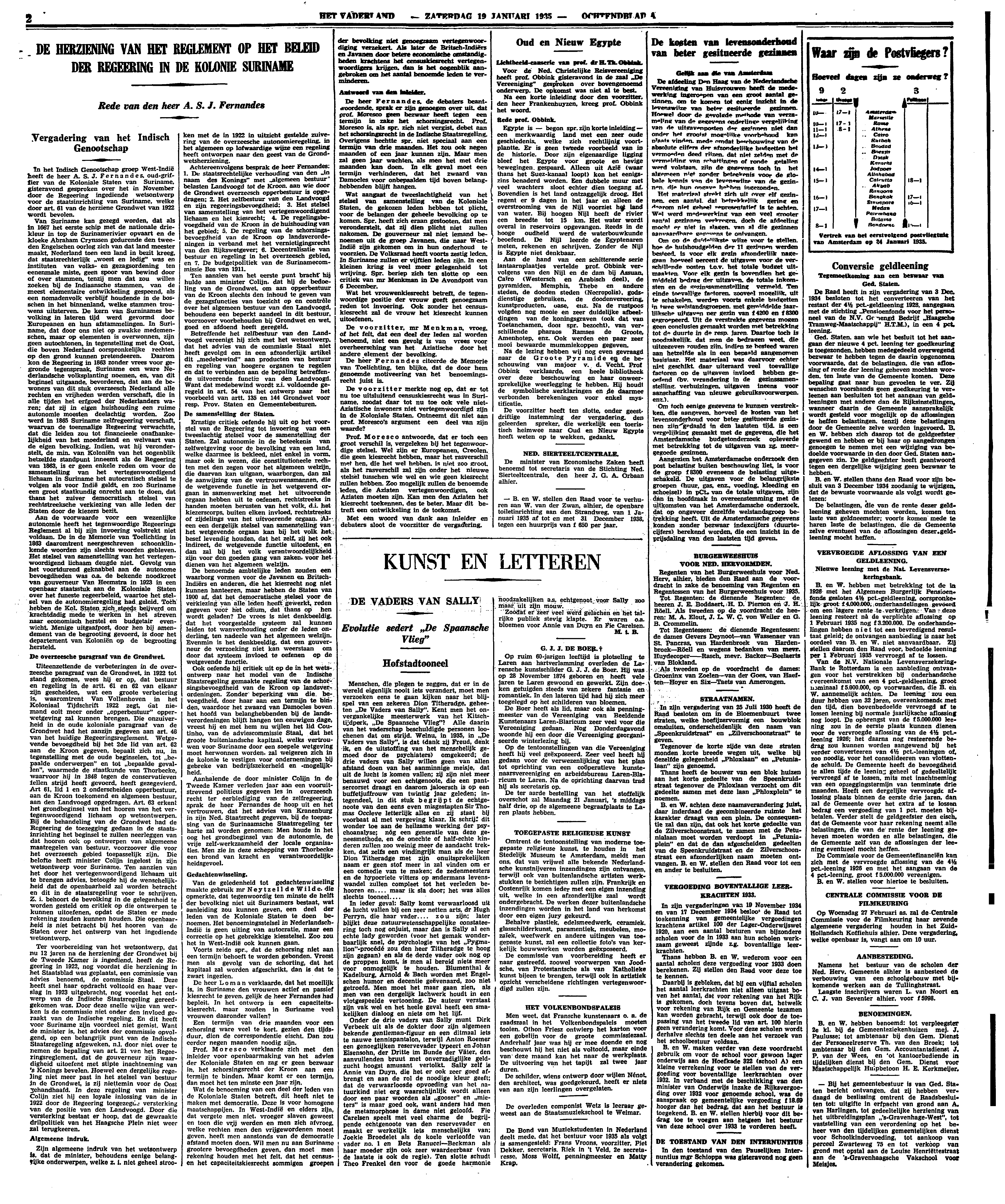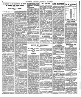Menschen, die plegen te zeggen, dat er in de wereld eigenlijk nooit iets verandert, moet men verzoeken eens te gaan kijken naar het blijspel van een zekeren Dion Titheradge, geheeten ‘De Vaders van Sally’. Kent men het onvergankelijke meesterwerk van het Kitschtijdperk, ‘De Spaansche Vlieg’? Alle daarin van het vaderschap beschuldigde personen loochenen dat om strijd. Welnu, in 1935, in ‘De Vaders van Sally’, is dat (dank zij Freud, denk ik, en de uitstoffing van het menschelijk gemoed door de psychiaters) omgekeerd; de drie vaders van Sally willen geen van allen afstand doen van het aanminnige meisje, dat uit de lucht is komen vallen; zij zijn niet meer benauwd voor een echtgenoote, die een pantsercorset draagt en daarom jaloersch is op een buffetjuffrouw van twintig jaar geleden; integendeel, in dit stuk begrijpt de echtgenoote van den eens even misgestapten Sir Thomas Occleve letterlijk alles en zij staat bij voorbaat al met vergeving klaar. Ik schrijf dit wonder toe aan de heilzame werking der psychoanalyse; nóg een generatie van deze geneesmethode, en de onechte of half-echte kinderen zullen zoo weinig meer de aandacht trekken, dat zelfs een vindingrijk man als de heer Dion Titheradge met zijn onuitsprekelijken naam er geen stof meer in zal vinden om er een comedie van te maken; de zedenmeesters en de hypocriete vitters op andermans levenswandel zullen compleet tot het verleden behooren en.... maar ik sla door; het was alles slechts tooneel....